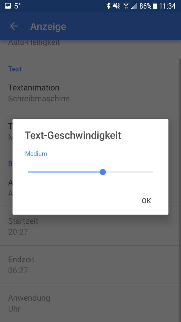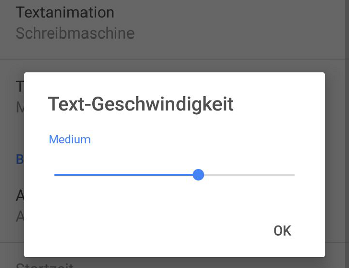 Für mich völlig unverständlich: Während die Geschwindigkeit des einfachen Textlaufes nicht geändert werden kann, ist eine Regelung im anderen Modus stufenlos möglich. Zwar ist der Text auch mit dieser Einstellung recht gut lesbar, eine Umsetzung der Geschwindigkeitsoption sollte aber einfach realisierbar sein.