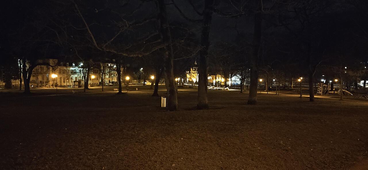 Je dunkler es wird, desto mehr verschwindet alles in einem dunklen Grau, während helle Bereiche weiterhin gut ausgeleuchtet bleiben. Der Nachtmodus arbeitet mit einer guten Sekunde Auslöse- und Bearbeitungszeit recht flott, kann ohne optische Bildstabilisierung aber auch keine Wunder vollbringen.