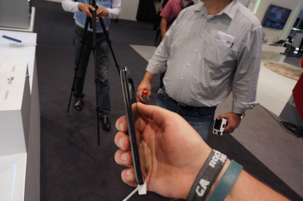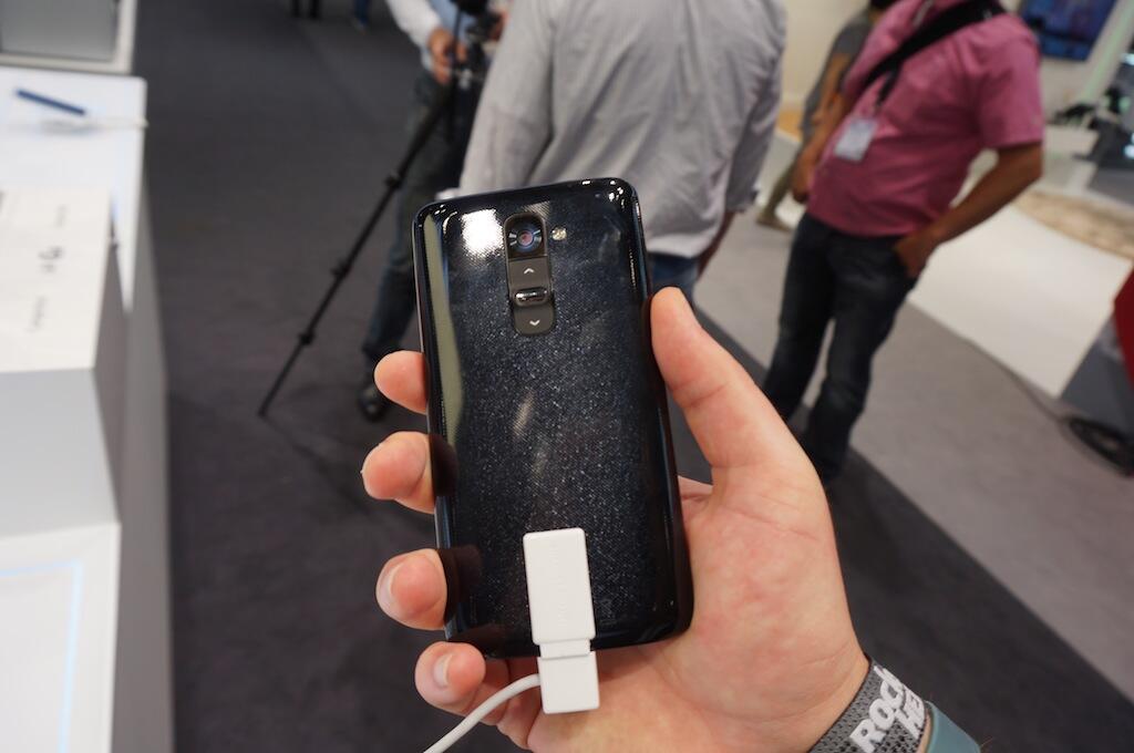 LG hat das G2 zwar schon vor einer ganzen Weile vorgestellt, doch wir hatten erst auf der IFA 2013 in Berlin die Chance uns das Gerät auch mal näher anzuschauen. Optisch wirkt das Gerät auf den ersten Blick durchaus edel und das Display macht auch einen richtig guten Eindruck. Schaut man sich jedoch die Rückseite an, wird man schon etwas skeptischer, denn nicht nur das Glitzern ist gewöhnungsbedürftig, auch die Power-Taste unter der Kamera ist ungewöhnlich. Ist man diese auf der rechten Seite des Gerätes gewohnt, dann muss man sich hier glaube ich erst mal umstellen.