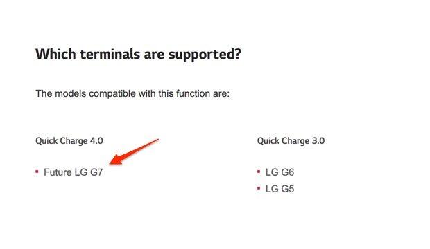 LG listet ein G7 mit Quick Charge 4.0 auf Webseite