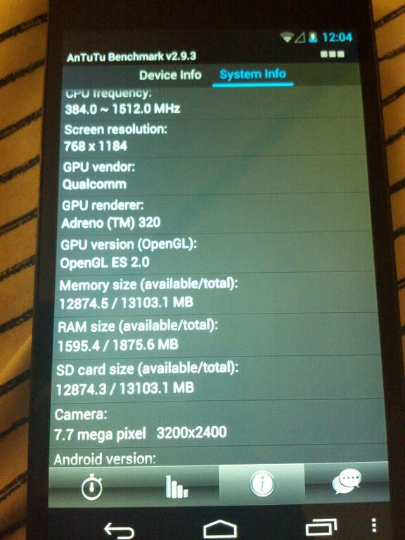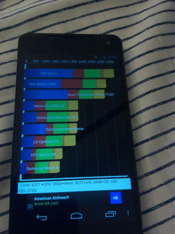 Wir hatten heute neue Bilder vom nächsten Nexus-Smartphone, wir hatten ein Foto vom LG Nexus 4 im Bestand von Carphone Warehouse und jetzt gibt es noch Benchmark-Ergebnisse und einen mutmaßlichen Termin für die Präsentation. Beim Termin steht momentan der 29. Oktober im Raum, welcher dank der Rede von Android-Chef Andy Rubin auf der “Dive Into Mobile”-Konferenz schonmal im Raum stand und vor ein paar Tagen bestätigten die Quellen von Cnet ebenfalls eine Präsentation im Oktober. Halte ich persönlich für glaubwürdig, ob jetzt Ende Oktober oder Anfang November dürfte dann am Ende auch keine Rolle spielen. Und für die Benachmark-Fans unter euch haben wir hier auch schon die ersten Ergebnisse nach dem Break.