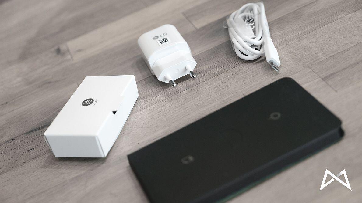 Im Lieferumfang befindet sich das V30 selbst nebst einem Microfasertuch. Dazu gibt es noch ein bisschen Papierwerk und ein SIM-Tool. Ein USB-USB/Typ-C-Kabel und ein Netzteil mit USB-Anschluss ist natürlich auch noch dabei. Last but not least finden wir noch ein B&O Headset in der Packung.