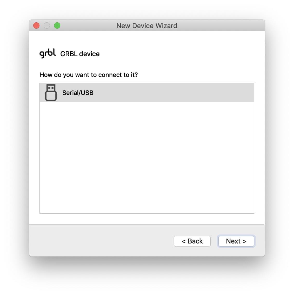 Auf dem MacBook Pro (13″ mit TouchBar) brachte der Suchdialog die App zum crashen. Allerdings konnte ich Lightburn anschließend wie gewohnt starten, den Suchdialog einfach direkt wieder weg klicken und den Laser manuell hinzufügen. Das klappte problemlos. Ich habe dazu einfach GRBL und anschließend Serial/USB ausgewählt und dann musste ich nur noch die 150 x 160 bearbeitbare Fläche einstellen und das war es auch schon.