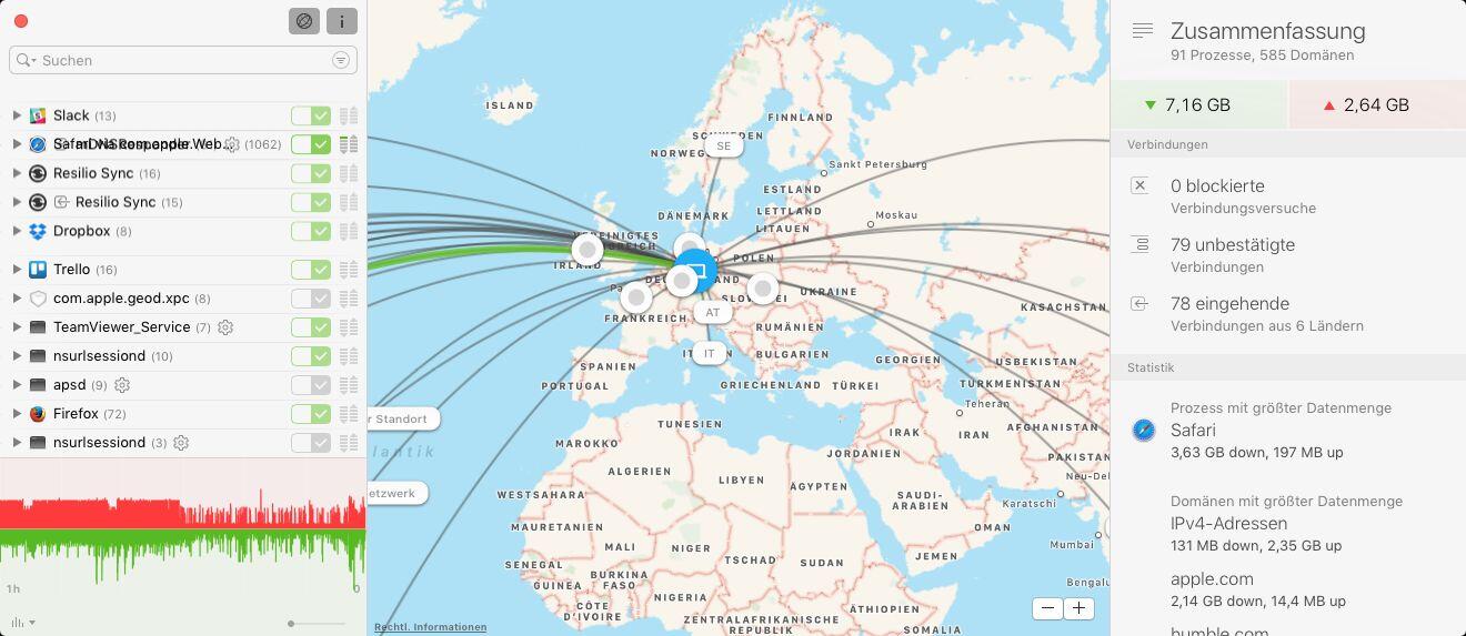 Die Anwendung nistet sich im Hintergrund auf macOS-Systemen ein, überwacht den Netzwerkverkehr und informiert detailliert darüber, welche App nach draußen kommunizieren möchte. Auf Wunsch kann man selbige dann daran hindern, oder auch durchwinken.