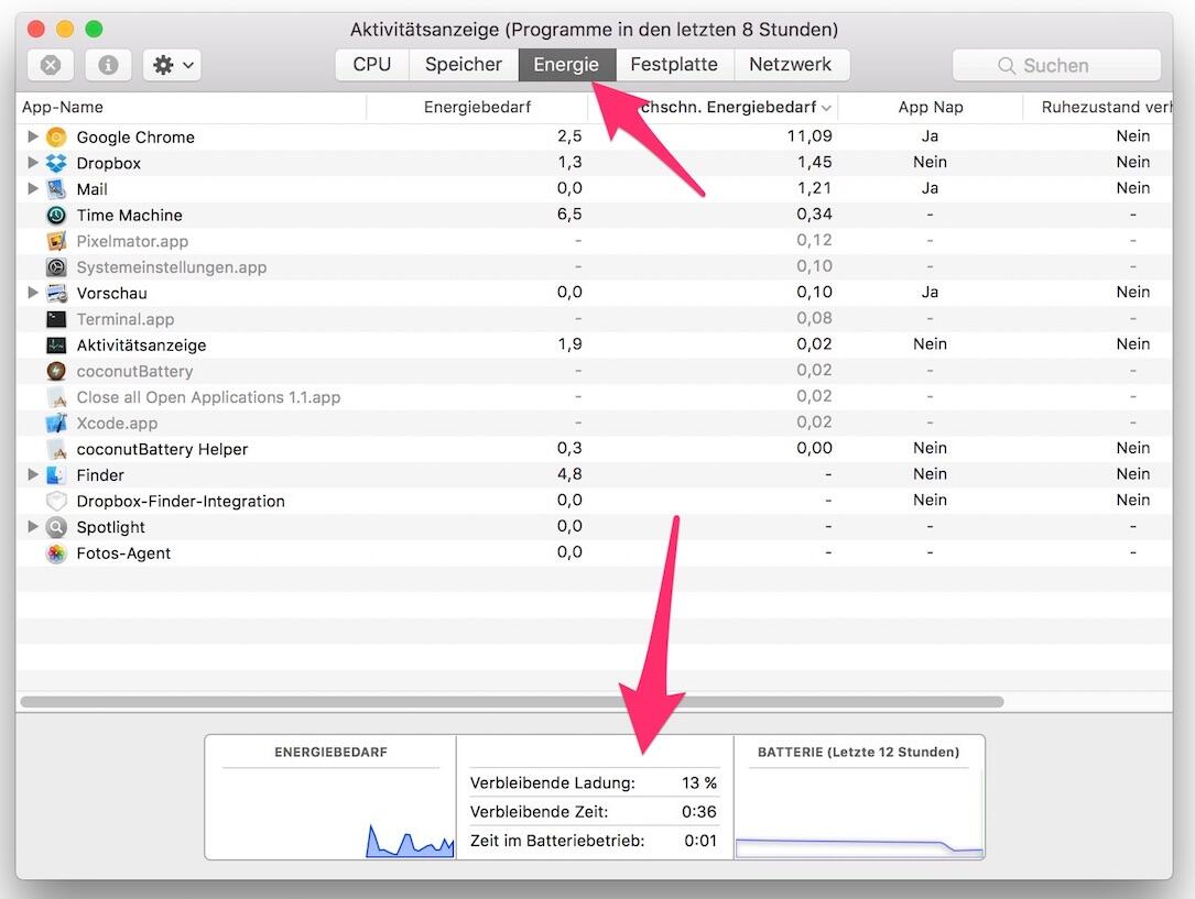 MacBook Pro: Verbleibende Laufzeit dem Akkusymbol wieder hinzufügen