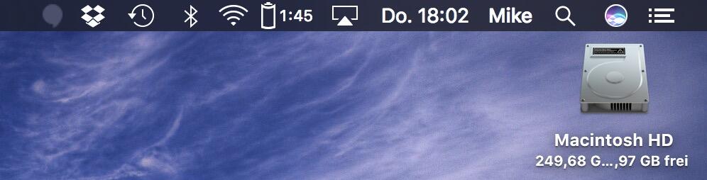 Die Symbole beider Apps können durch gedrückt halten der Command-Taste in der Reihenfolge verschoben werden. Möchtet ihr die original Akku-Anzeige aus der Menüleiste entfernen, so genügt ein gedrückt halten der Command-Taste und ein herausziehen des Icons.