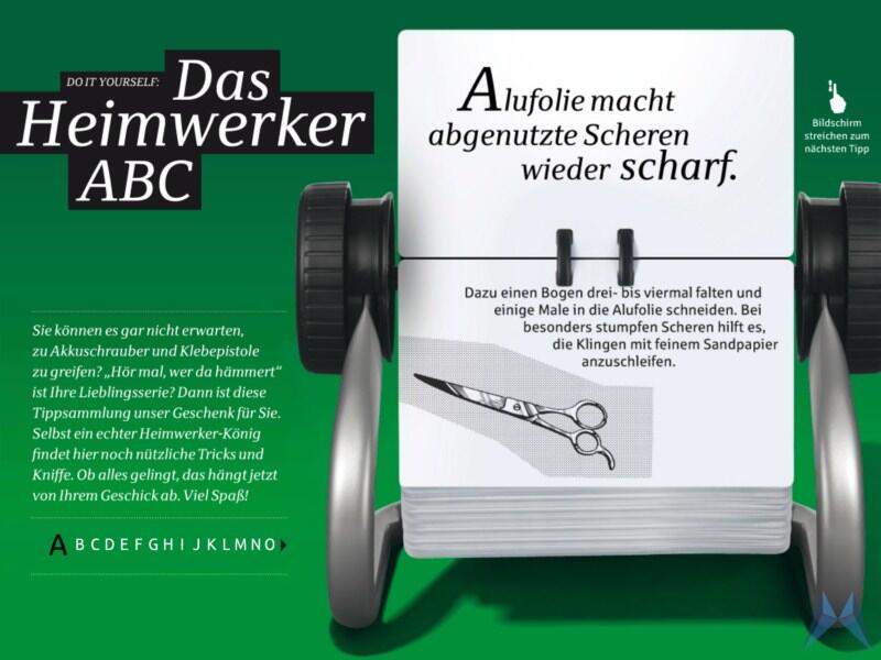 Es finden sich im Magazin sowohl Reportagen, als auch Interviews und nützliche Tipps für den Alltag. Nach eigenen Angaben machen sich hier „renommierte Journalisten“ ans Werk, die Texte lesen sich auf jeden Fall angenehm flüssig und sind größerenteils auch informativ. Jede Ausgabe hat ein Kernthema, wobei dies bei der ersten Ausgabe das Thema „Zuhause“ ist. Leider ist die Ausgabe noch nicht an das neue Retina-Display vom iPad angepasst, schaut aber dennoch ganz gut daraus aus.