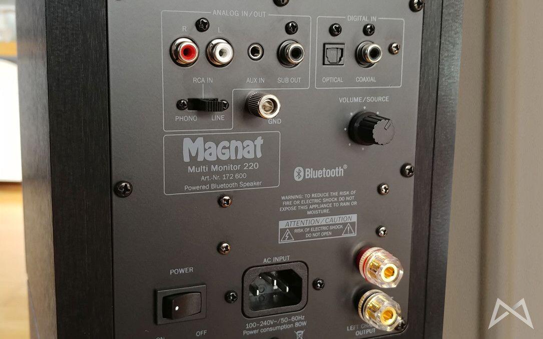 Als kleine Besonderheit finden wir am Multi Monitor 220 noch einen Phonoeingang für einen guten alten Schallplattenspieler. Beide Speaker bieten 2×40 Watt RMS-Leistung.