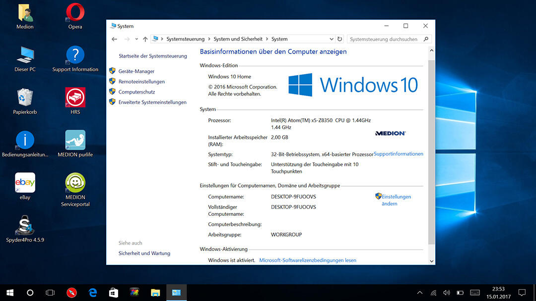 Von den propagierten 64GB Speicher waren noch rund 40GB verfügbar. Leider war das System mit allerlei Bloatware und Desktop-Verknüpfungen zu bekannten Auktionshäusern, Hotelportalen und den anderen, üblichen Verdächtigen zugemüllt. Medion ist hier zwar weiß Gott nicht der einzige Hersteller, der so agiert, aber als „normal“ akzeptieren muss man es deswegen noch lange nicht.