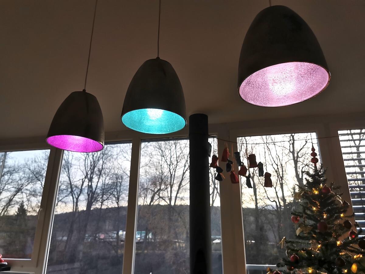 Am Ende kann die Leuchte dann Abends gedimmt in Warmweiß leuchten, zum Lernen in Kaltweiß mit 100 % oder auch passend zur Party in verschiedenen Farben schön langsam überblendend von einer Farbe in die nächste Farbe. Hier im Nerd-Haushalt kommt das neue „Esszimmer“ auf jeden Fall sehr gut an und es wertet die Esszimmerlampe noch einmal deutlich auf.