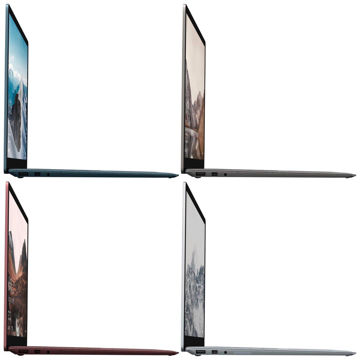 Microsoft plant vier Farben vom Surface Laptop: Grau, Blau, Rot und Gold. Bei der Tastatur-Oberfläche hat man sich für Alcantara entschieden. Der Laptop soll 1,2 Kilogramm schwer sein und misst an der dünnsten Stelle 9,9 Millimeter. Die dickste Stelle misst 14,5 Millimeter. Besonders viele Anschlüsse hat Microsoft hier nicht verbaut, ein SD-Slot, ein USB-Anschluss (kein USB Typ C), ein Kopfhöreranschluss und vermutlich noch ein DisplayPort-Anschluss. Das war es wohl.
