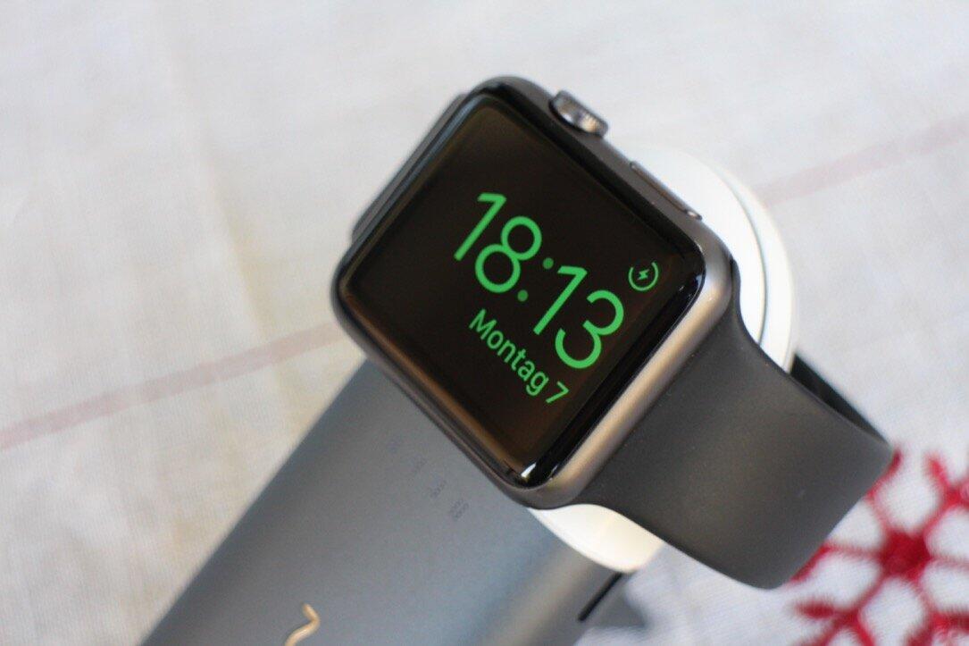 Das kleine Lightning-Kabel sitzt sicher in der oberen Rundung und das Ladepad für die Apple Watch nimmt die Uhr exakt so auf, wie das Original-Zubehör von Apple.