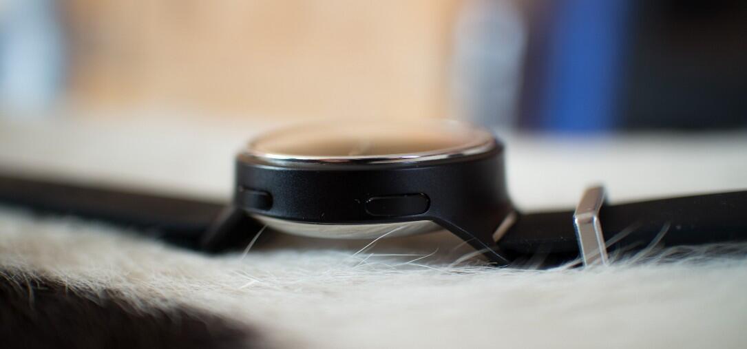 Das robuste, aber nicht sonderlich dünne Metall-Gehäuse macht einen hochwertigen Eindruck und wird auf der Oberseite von einem Edelstahl-Rahmen geziert, der die Uhr optisch noch einmal ein bisschen interessanter macht. Ansonsten wirkt die Misfit Phase ziemlich schlicht, was unter anderem an den nicht gerade auffälligen Edelstahl-Zeigern und der in derselben Farbe wie das Gehäuse gehaltenen Lünette liegt. Dadurch eignet sich die Uhr zu jedem Outfit – dass sich in ihr smarte Funktionen verstecken, ist ganz und gar nicht ersichtlich.