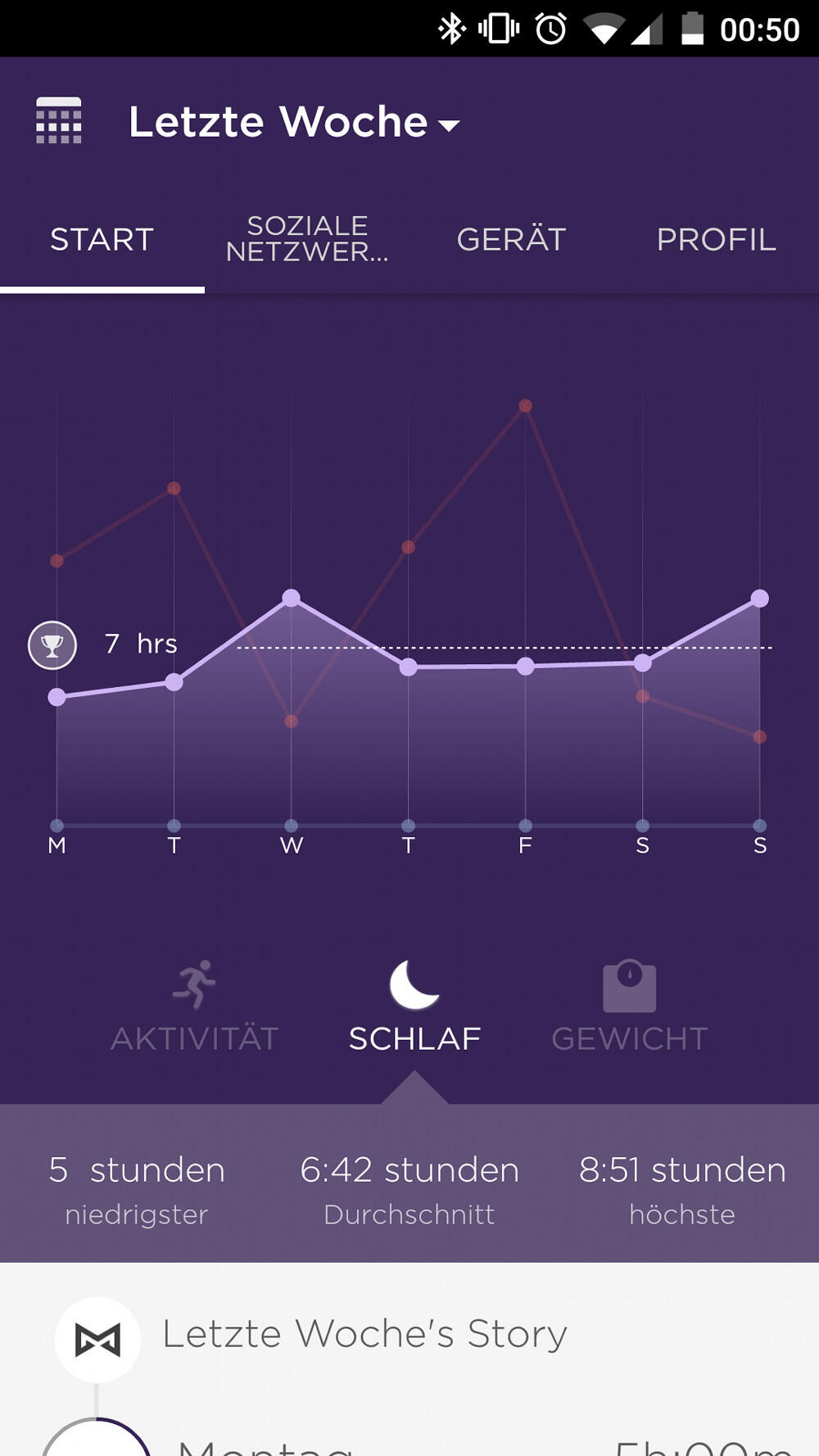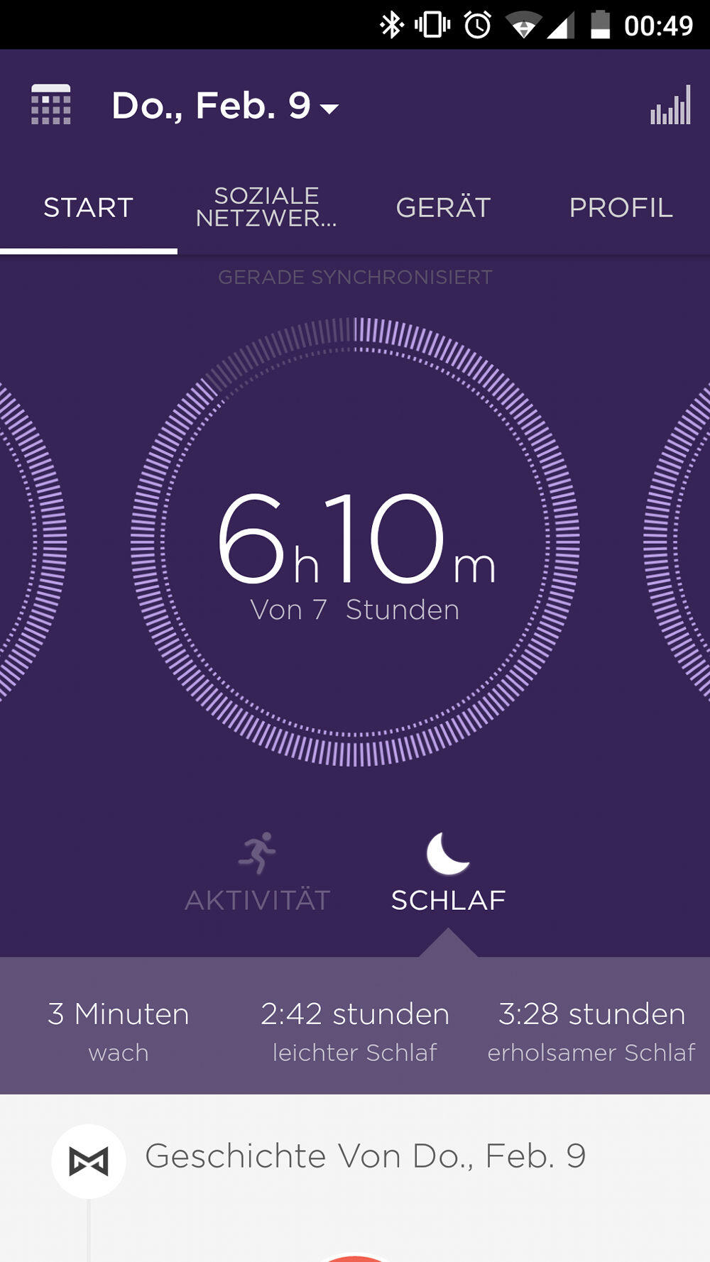 Neben den sportlichen Aktivitäten zeichnet die Misfit Phase selbstverständlich auch den Schlaf auf, was ebenfalls ziemlich genaue Daten hervorbringt. Selbst ein kurzes Aufwachen in der Nacht ist am nächsten Tag in der Regel innerhalb der App zu sehen.