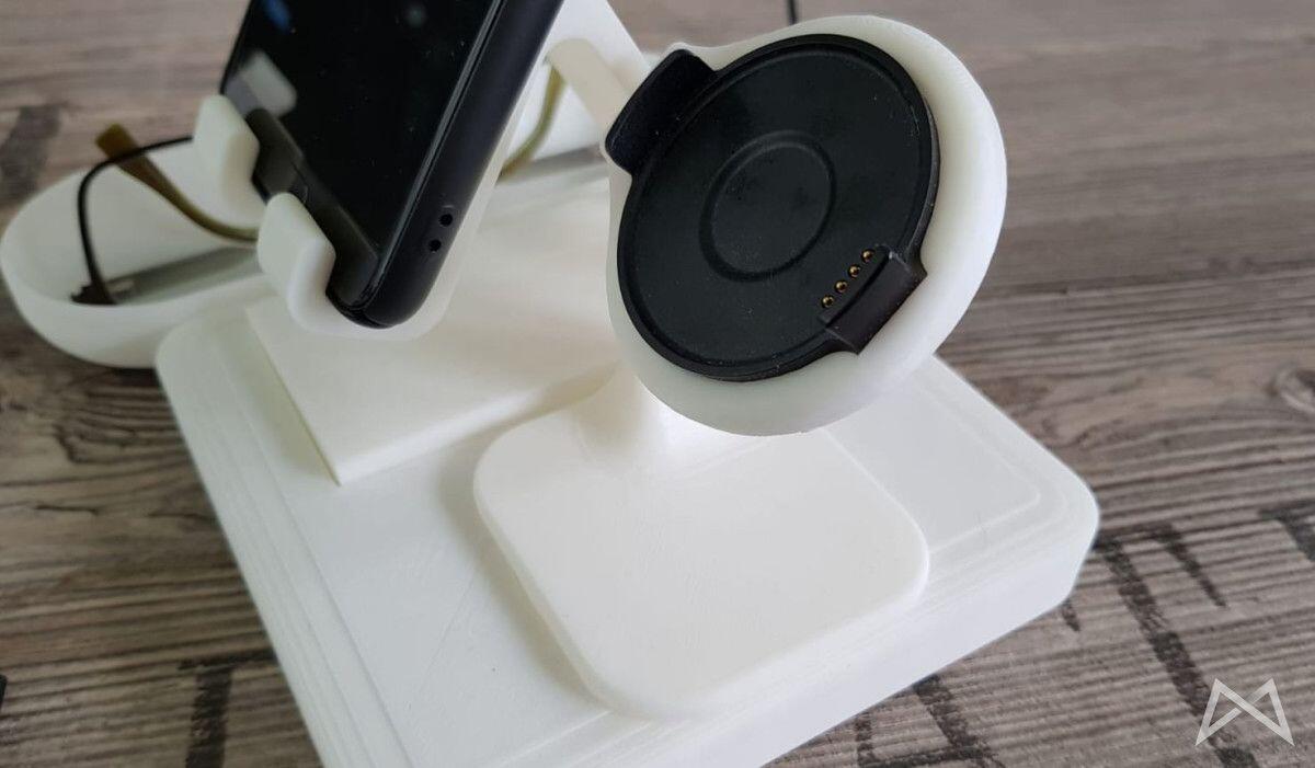 Durch das neue Armband benötigte ich noch einen neuen Adapter für mein Nachtkästchen. Er wurde ausgedruckt und basiert auf diesem hier auf Thingiverse.com. Der Stand hat seitlich sogar schon einen kleinen Kabelkanal und macht sich prima auf meinem Kombi-Teil für Brille, Handy und Smartwach. Jetzt kann ich die Uhr auch prima mit einem geschlossenen Armband seitlich aufschieben und Abends aufladen lassen.