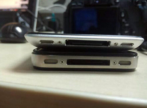 Zum einen die schwarze Stelle auf der Rückseite, die wohl für die Antenne gedacht ist, und dann der alte und große Dock-Connector. Die neue Generation wird sehr wahrscheinlich einen kleineren bekommen. Außerdem sehen wir auf dem Bild auch ein iPhone 4 und kein 4S, das ist natürlich kein Beweis, aber ein Argument für ältere Bilder. Was sehen wir hier also?