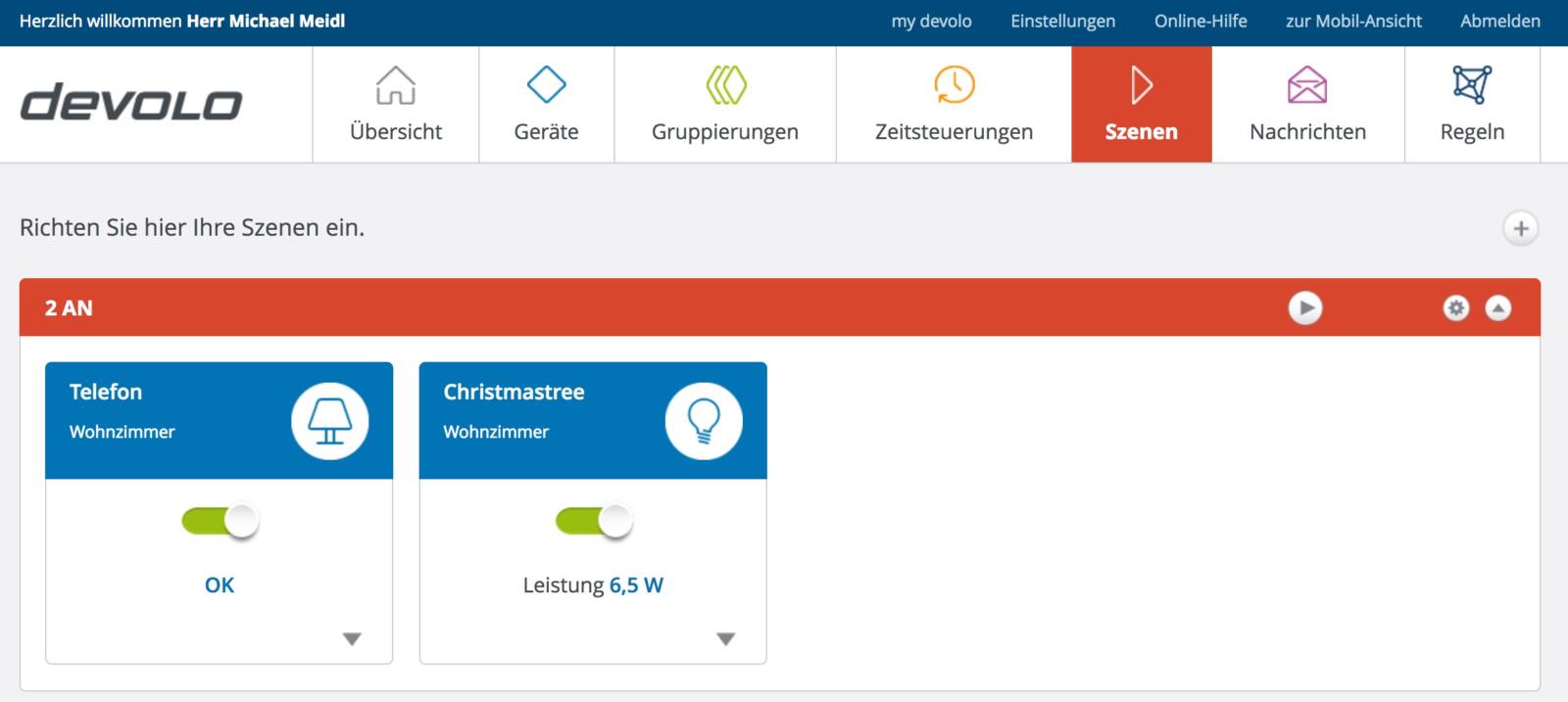 Natürlich können diese Szenen dann auch per Handy-App oder dem Online-Portal von Devolo gesteuert werden. Also ist die Beleuchtung dann prima via Regeln zeitgesteuert, oder kann über die App/das Online-Portal gesteuert werden.