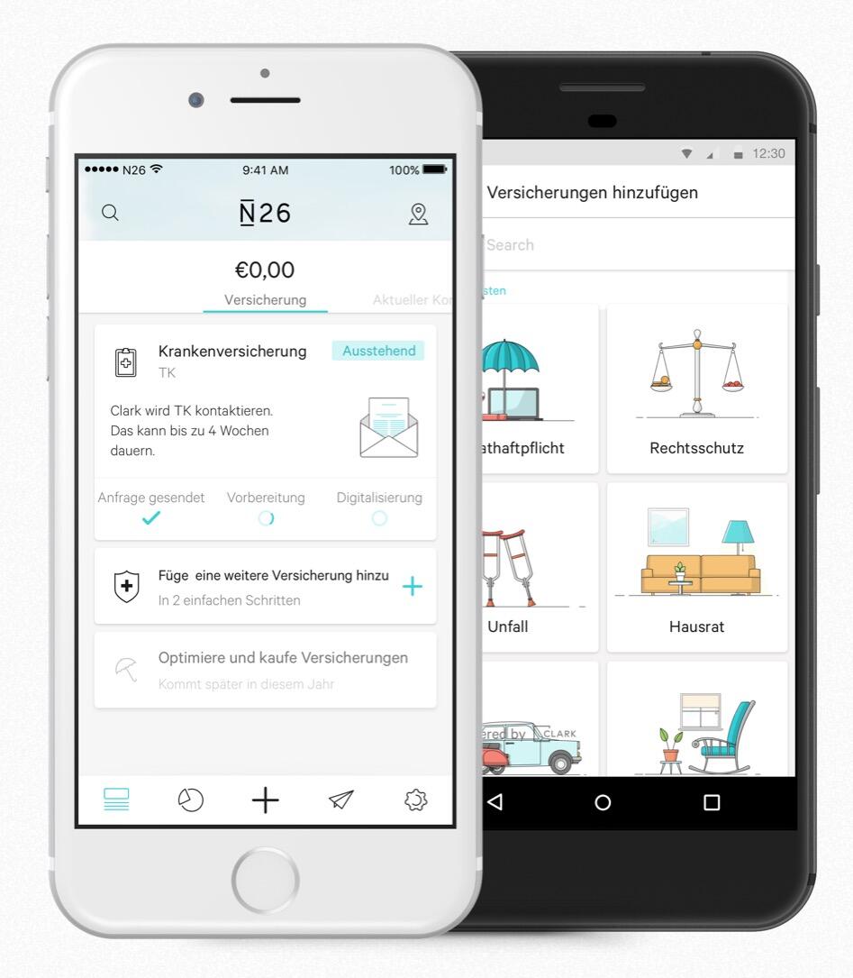 Ab sofort bietet die mobile Bank N26 in Zusammenarbeit mit „Clark“ den Versicherungsservice N26 Insurance an.