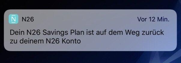 Sobald das Festgeld ausläuft, pusht die N26-App auch eine Info darüber an den Nutzer. Eine weitere Pushmeldung folgt dann kurze Zeit später, wenn das Geld inklusive Zinsen auf dem Konto landet.