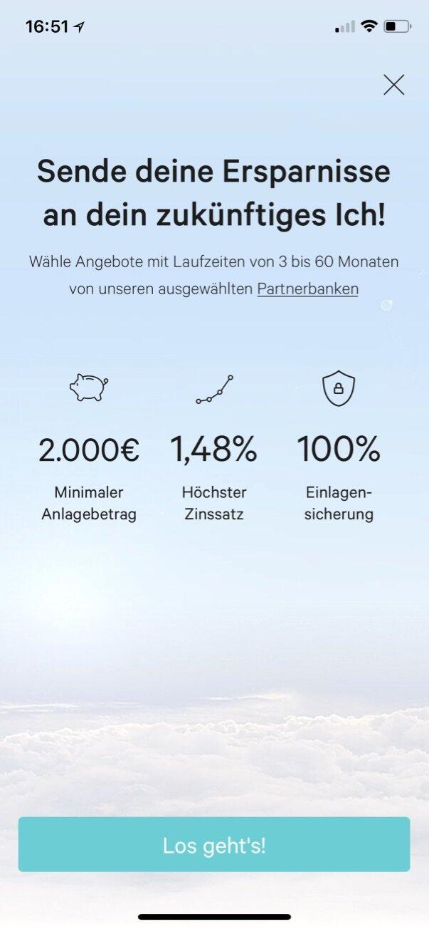 Bei der ersten Anlage wird das Konto bei Weltsparen eröffnet, natürlich passiert das alles im Hintergrund und der Nutzer wird darüber in der App auf dem Laufenden gehalten. Bei jeder weiteren Anlage ist dies nicht mehr nötig, die Abläufe beschleunigen sich dann also.