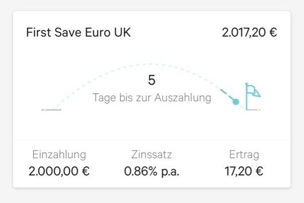 Mit einer kleinen Animation wird angezeigt, wie lange das Festgeld noch läuft. Tippt man diese an, erfährt man alle Details und hat zudem auch Zugriff auf o.g. Dokumente.