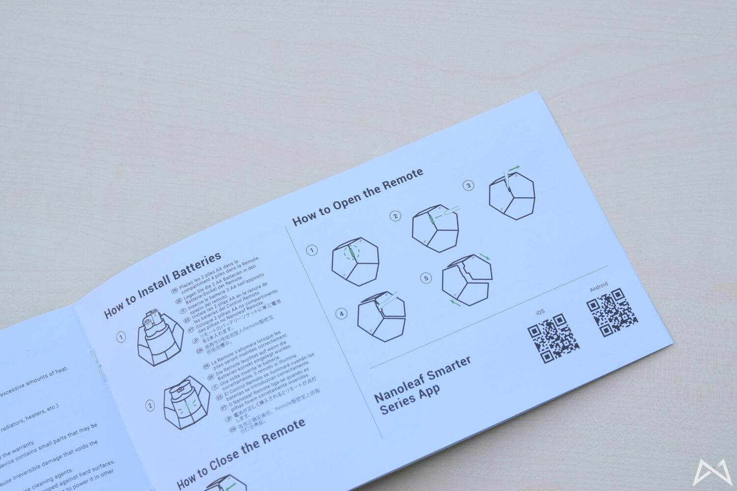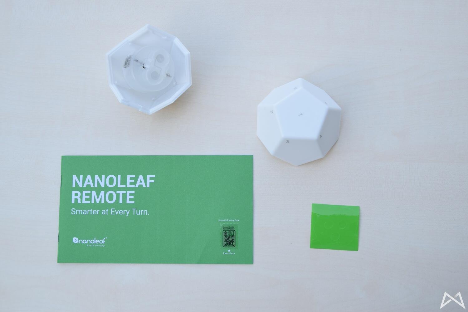 Ähnlich wie bei dem Aurora-System verzichtet Nanoleaf bei der Verpackung auf unnötigen Schnickschnack. Bis auf eine Ausnahme zumindest, denn der grüne Nanoleaf-Sticker ist auch bei der Fernbedienung mit an Bord.