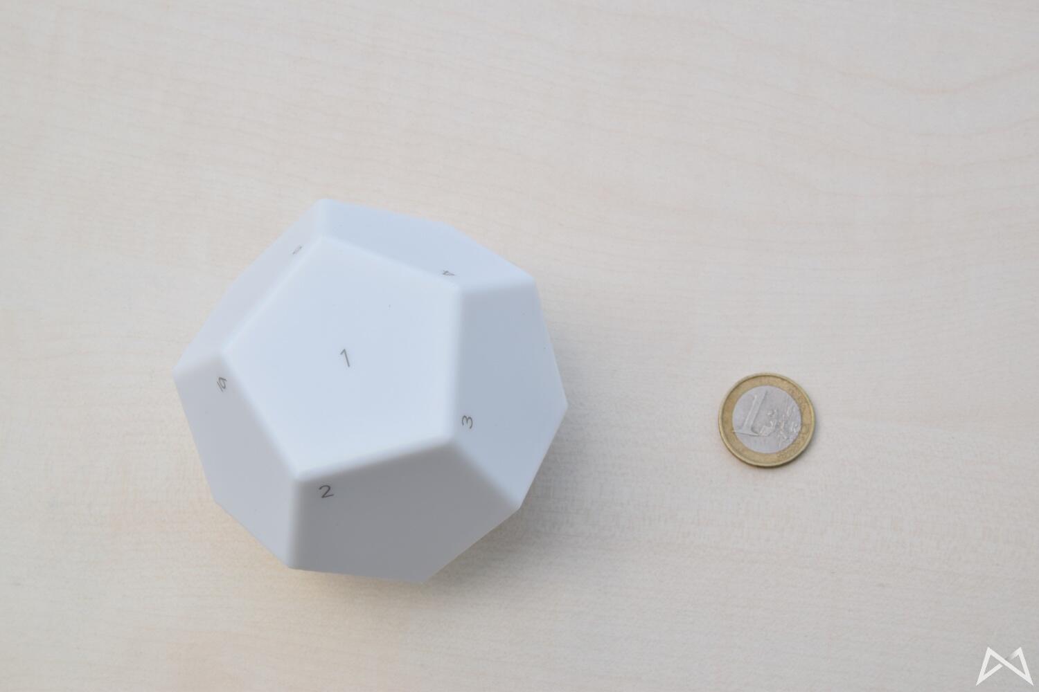 Nun brachte Nanoleaf ein neues Zubehör auf den Markt, welches bereits vor über einem Jahr angekündigt wurde. Es handelt sich dabei um eine Fernbedienung in Form eines Dodekaeders (zwölfseitiger „Würfel“). Diese kann sowohl die Nanoleaf Aurora-Panels fernsteuern, als auch andere Homekit-Geräte und selbst eine IFTTT-Einbindung ist möglich.