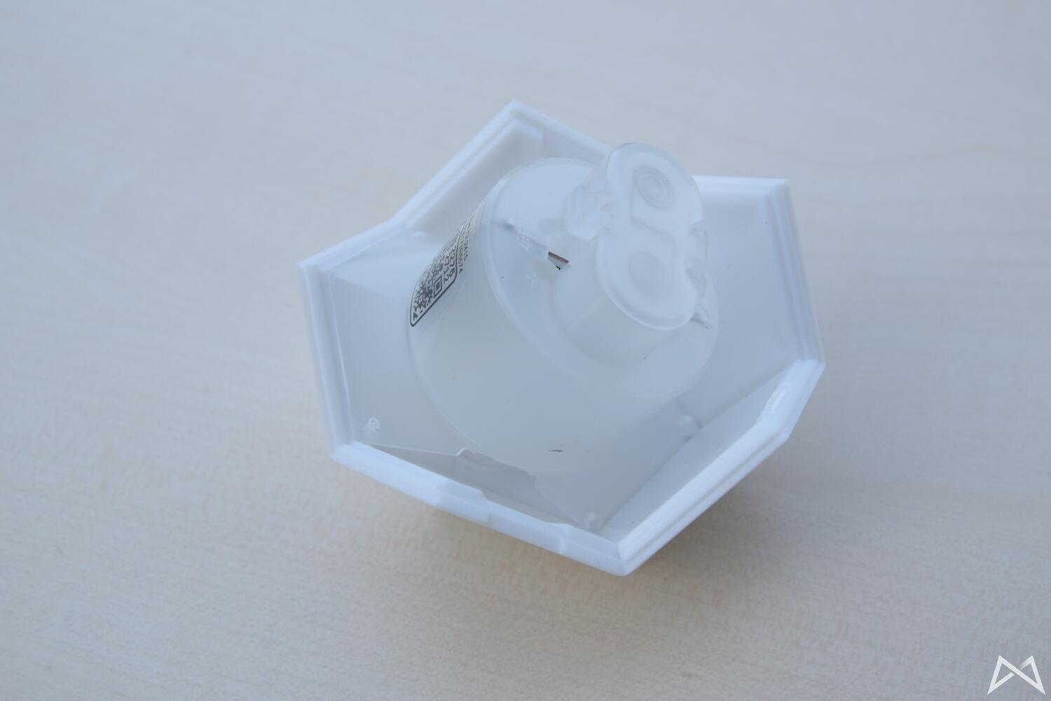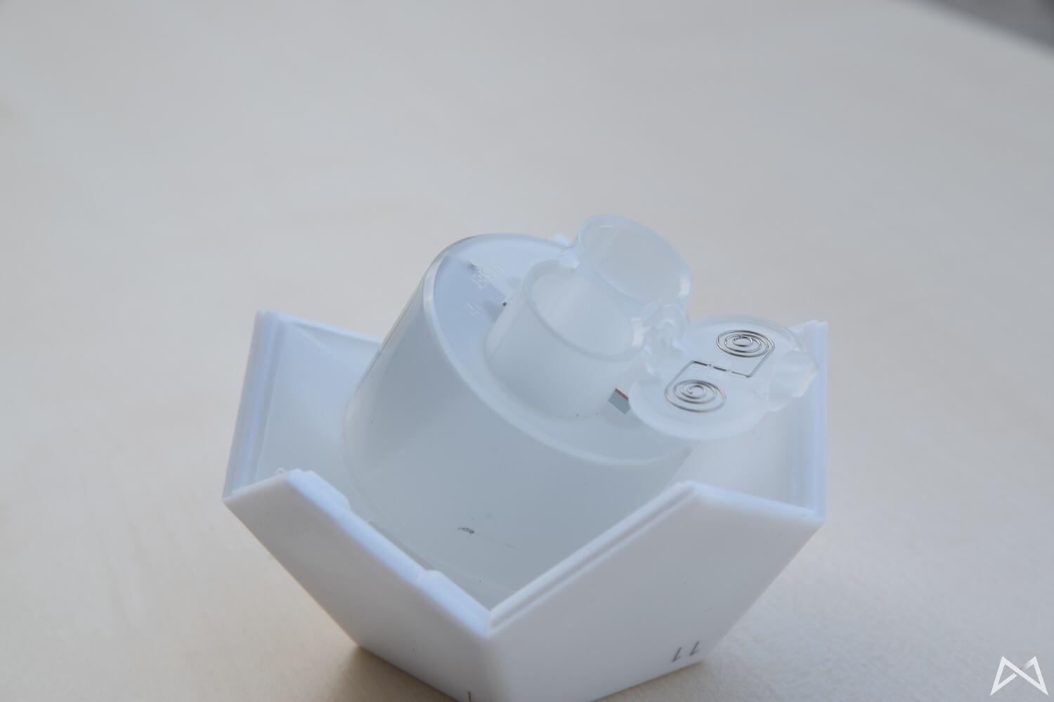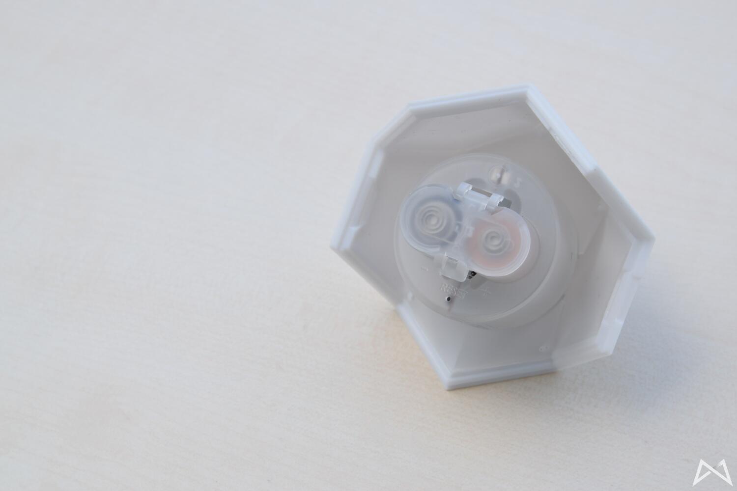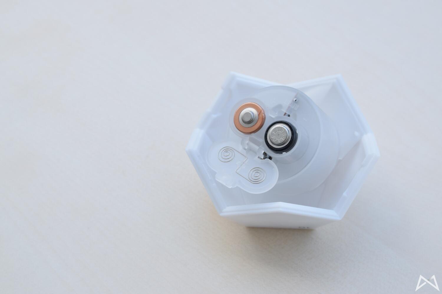 Die Nanoleaf Remote kommt also zweigeteilt daher. Dies ermöglicht es, die Batterien einzusetzen, was theoretisch nur einmal alle paar Jahre notwendig sein sollte.