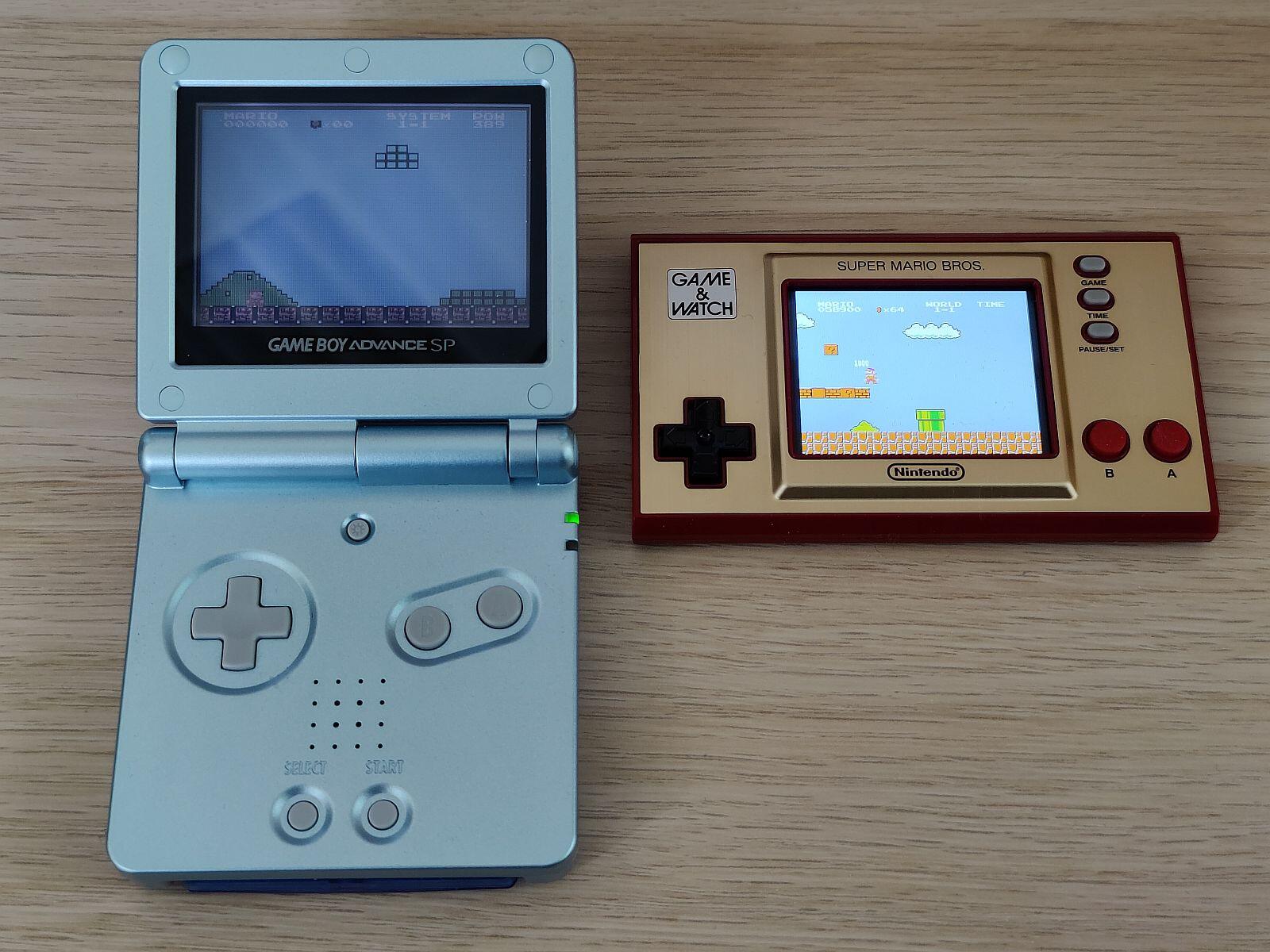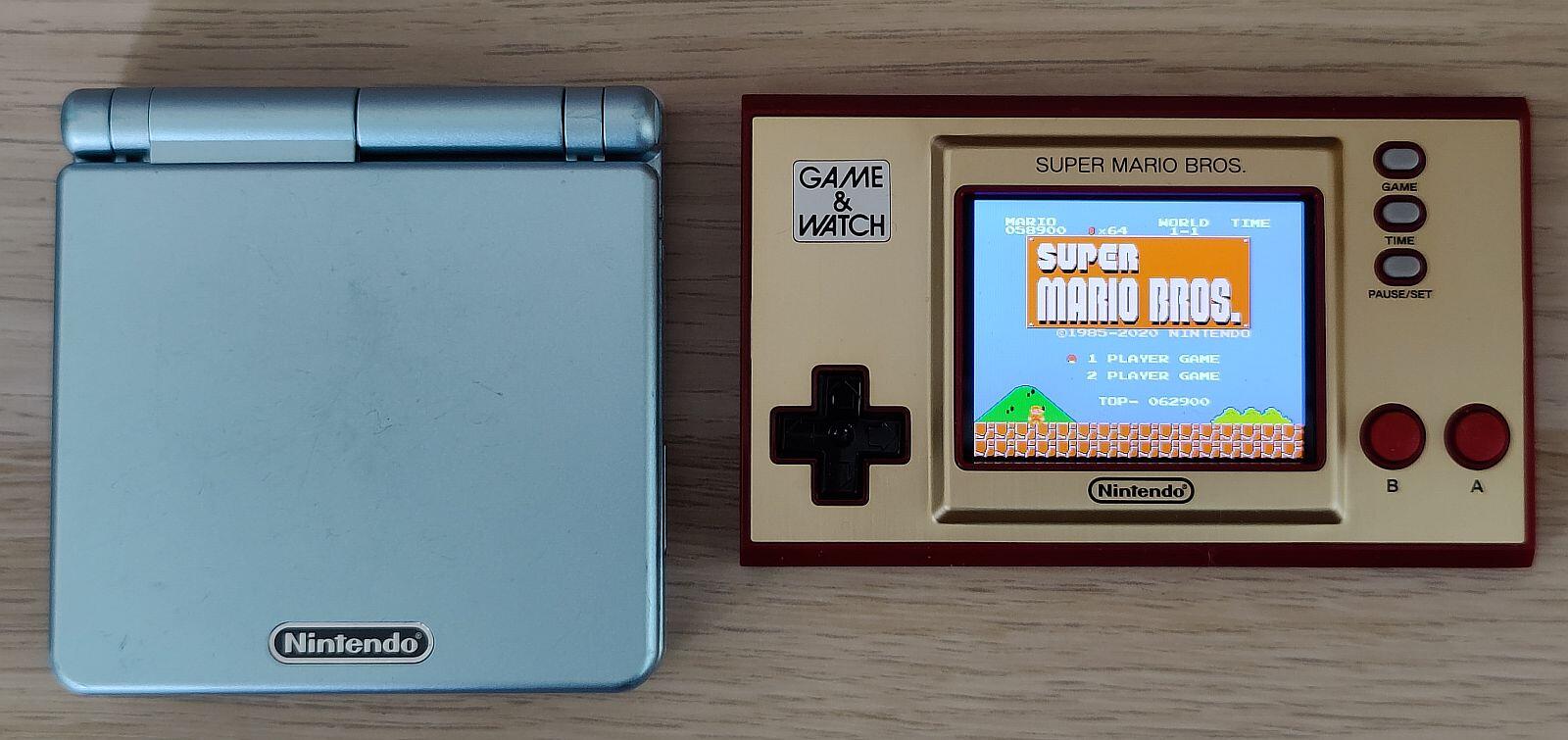Der Look erinnert sofort an die alten Game & Watch-Handhelds mit dem feinen Unterschied, dass das neue LCD-Display verglichen mit der alten Hardware ein Meilenstein nach vorne ist. Hier kann ich direkt den oben angeteaserten Vergleich mit dem alten Gameboy Advance SP bringen.