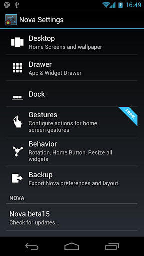 - Nova Launcher Prime features (Gestures, Hide Apps, Dock Swipes and more scroll effects)