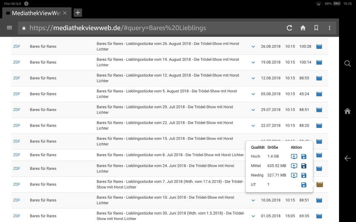 Nützlich: MediathekViewWeb und ein Fire-Tablet