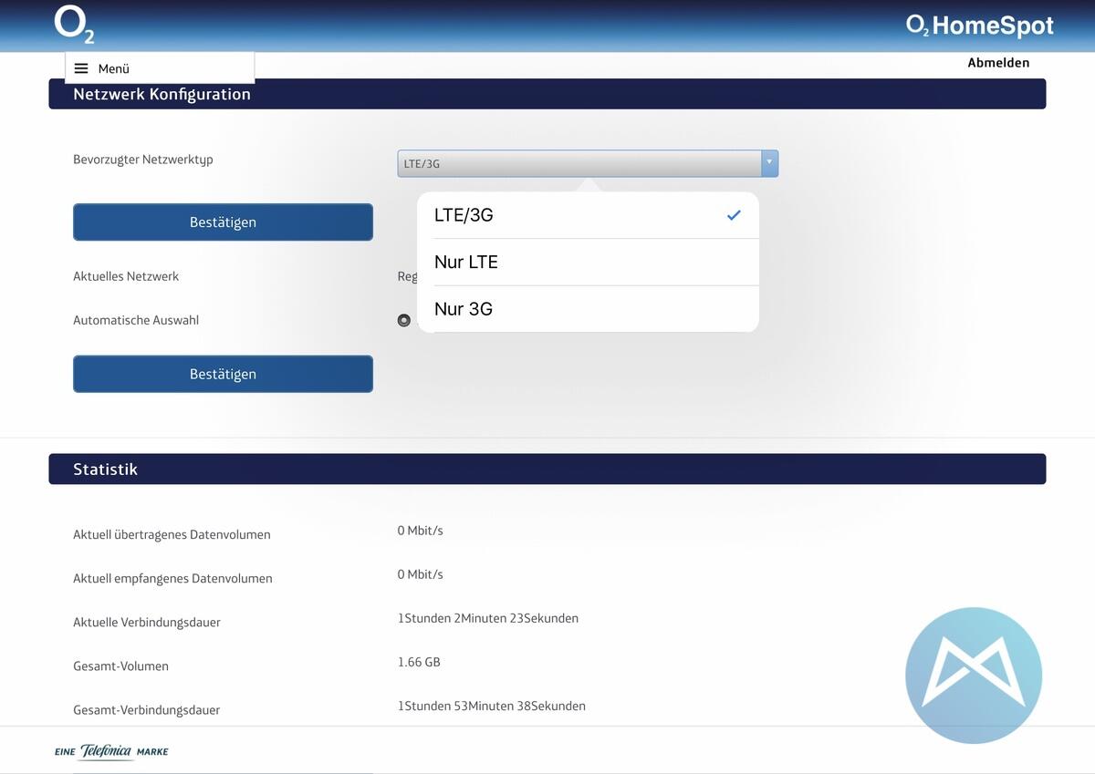 Kommen wir zur Software des o2 HomeSpot Routers. Diese ist leider etwas unübersichtlich und kompliziert zu bedienen. Das liegt vor allem an der umständlichen Menüführung, welche über lediglich einen Haupt-Menüpunkt und dann via Drop-Down-Menüs läuft.