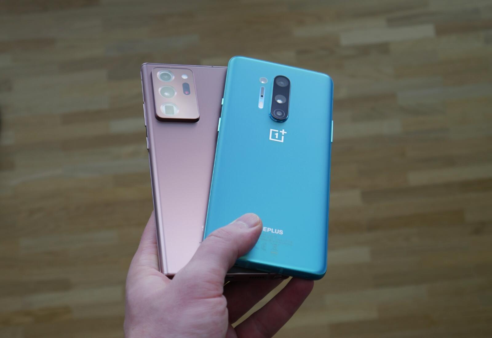 Samsung Galaxy Note 20 Ultra Oneplus 8 Pro Hand Front
