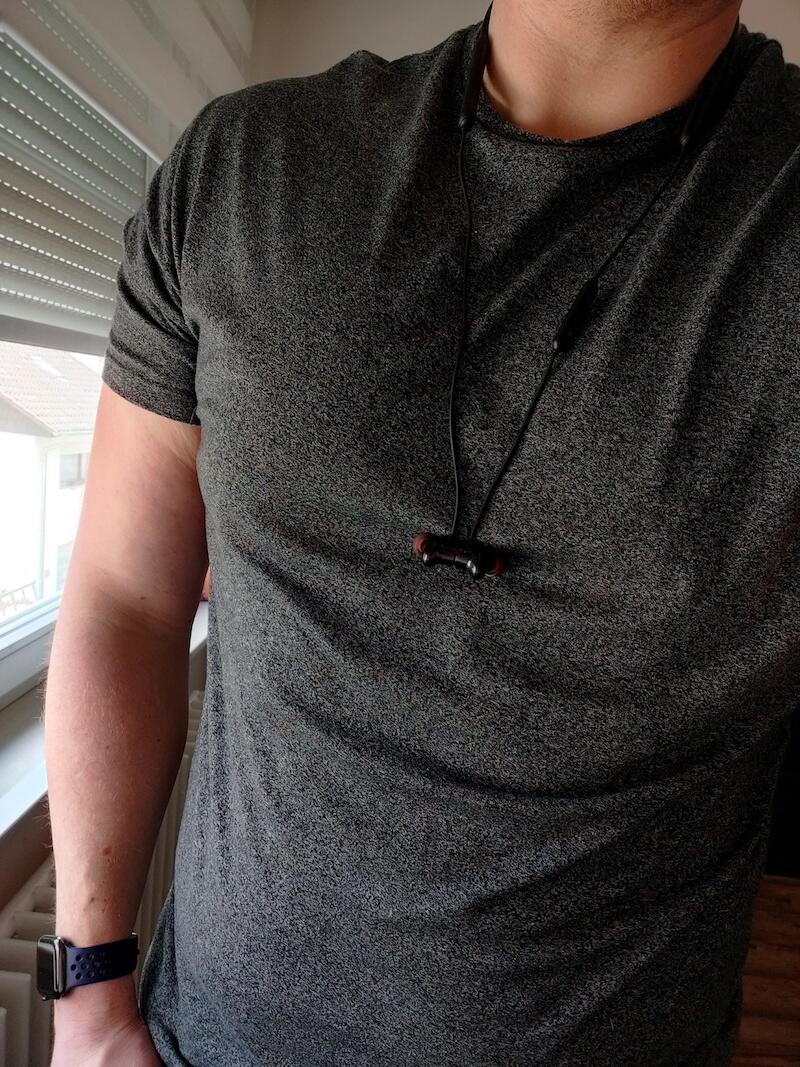 Das funktioniert gut und das Gummi im Nacken ist auch nicht unangenehm, das habe ich sogar im Sport getestet. Allerdings muss ich auch sagen, dass mir ein dünnes Kabel lieber ist. Für mich eigenen sich die Bullets eher weniger für den Sport, auch wenn der Sitz super ist. Doch das Gewicht im Nacken ist vor allem auf dem Laufband etwas unangenehm (es springt hoch und runter).