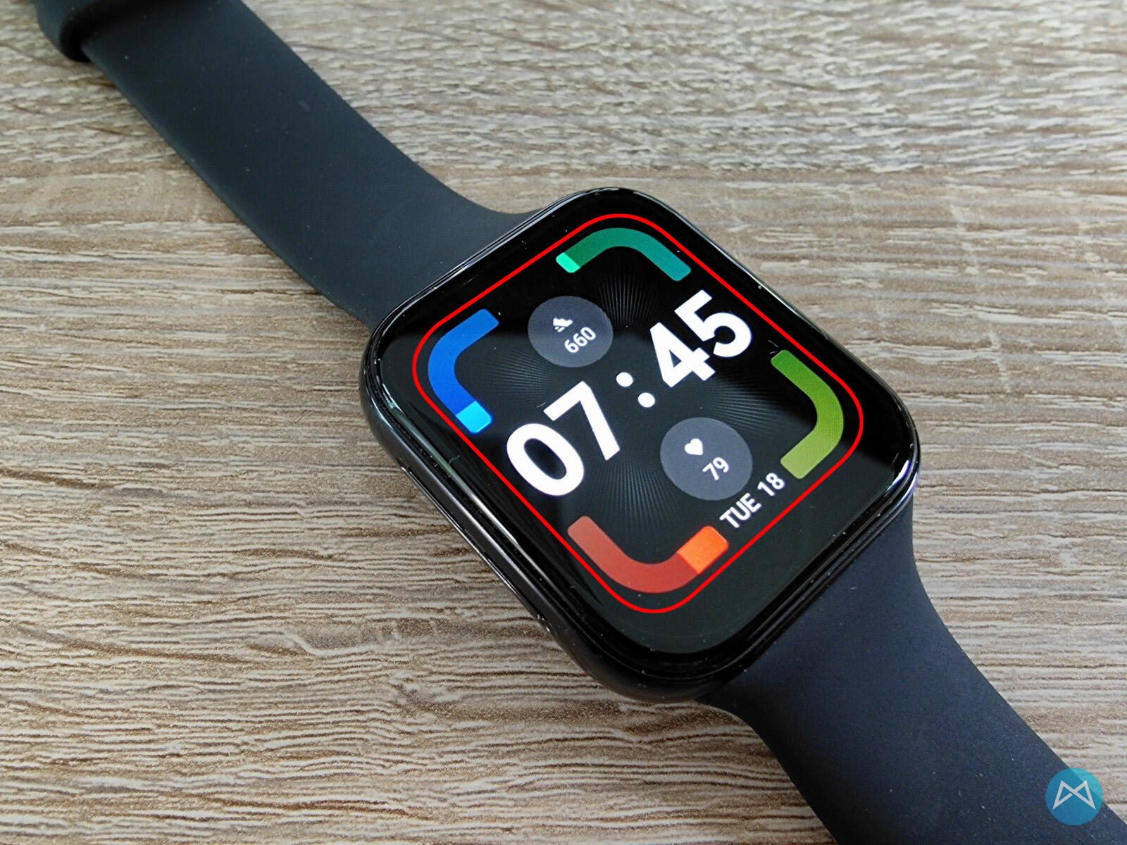 Die kleinere 41 mm Variante hat im Gegensatz zur noch dieses Jahr erscheinenden 46 mm Version kein gebogenes Display. Das führt dazu, dass der nicht genutzte Rand um das Display herum gefühlt etwas dick ist.