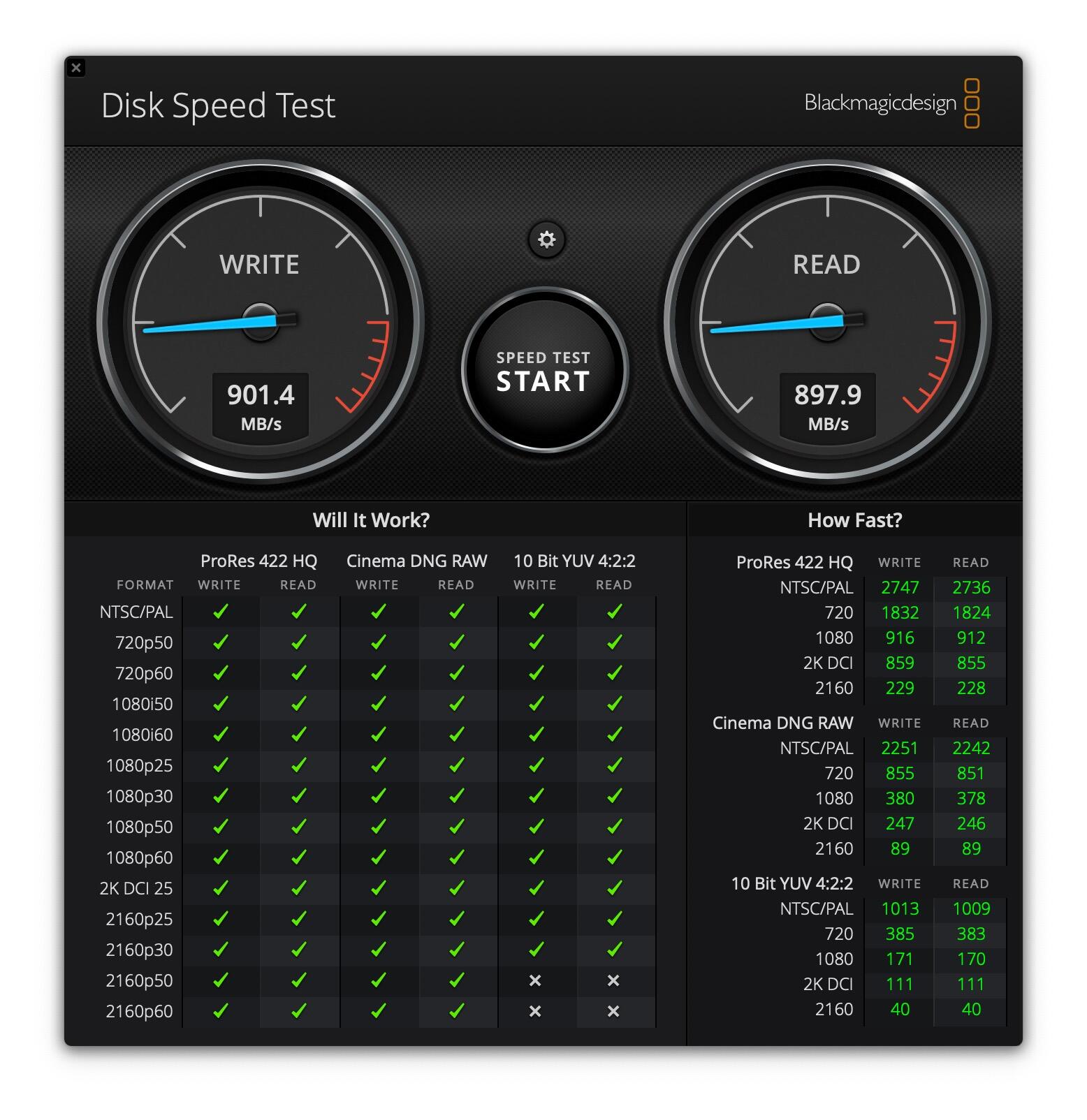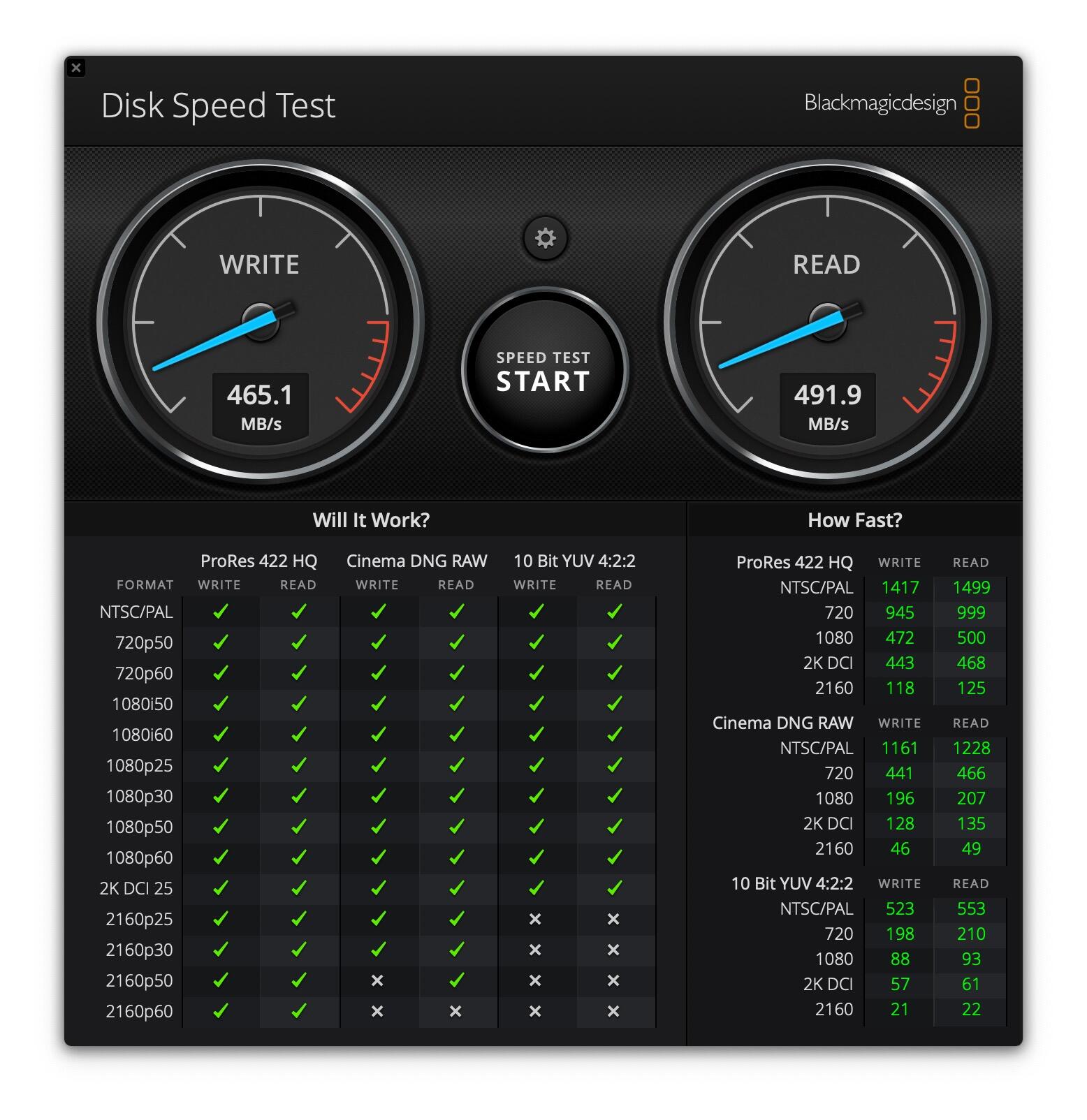 Die Screenshots vom Blackmagic sprechen klare Worte. Die NoName packt 465/491, während die WD Black 901/897 schafft.