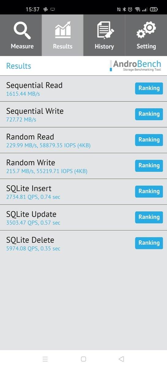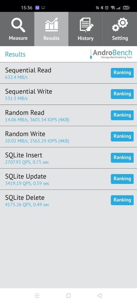 Der Screenshot von 15:36 Uhr ist von der SSD und der Screenshot von 15:37 Uhr ist der Screenshot vom internen Speicher des Oppo Find X2 Pro. Natürlich hinkt der Vergleich, weil eine extern angeschlossene Platte fast zwangsläufig langsamer ist, als der interne Speicher eines Geräts, aber für einen Vergleich können die Zahlen sicher nicht schaden.