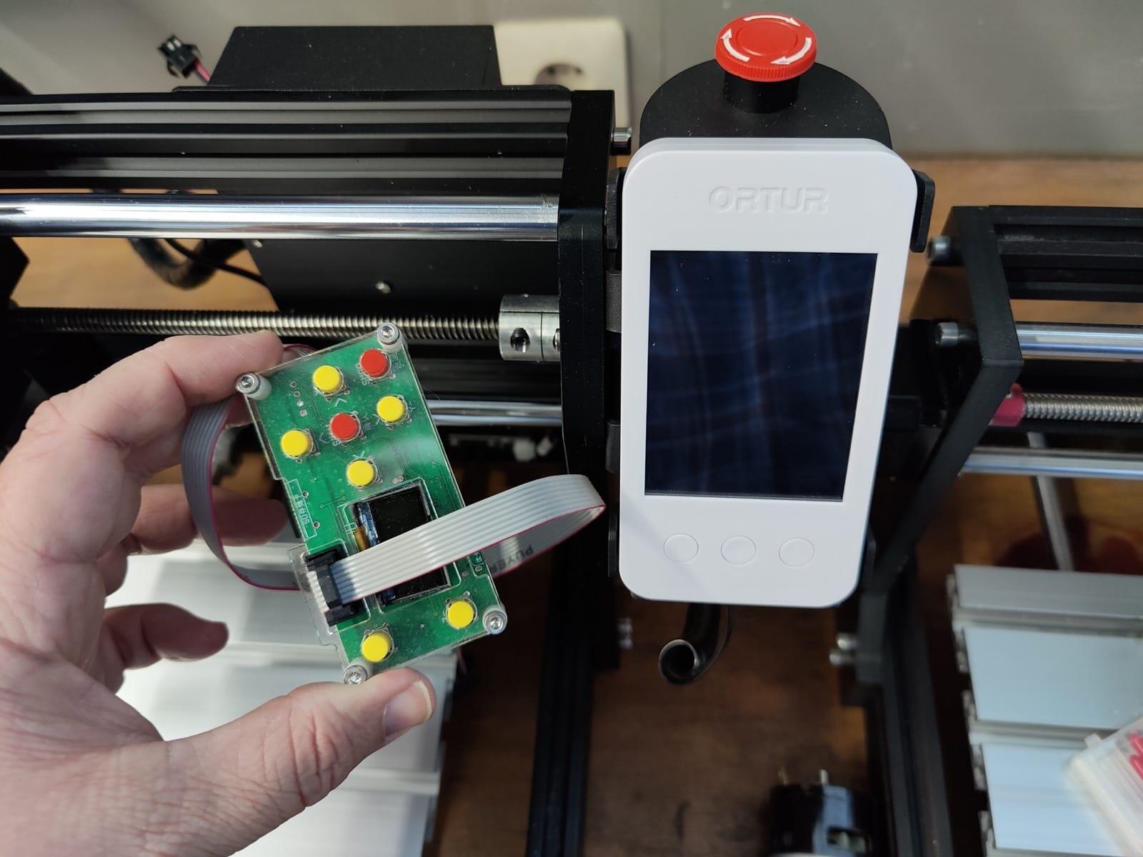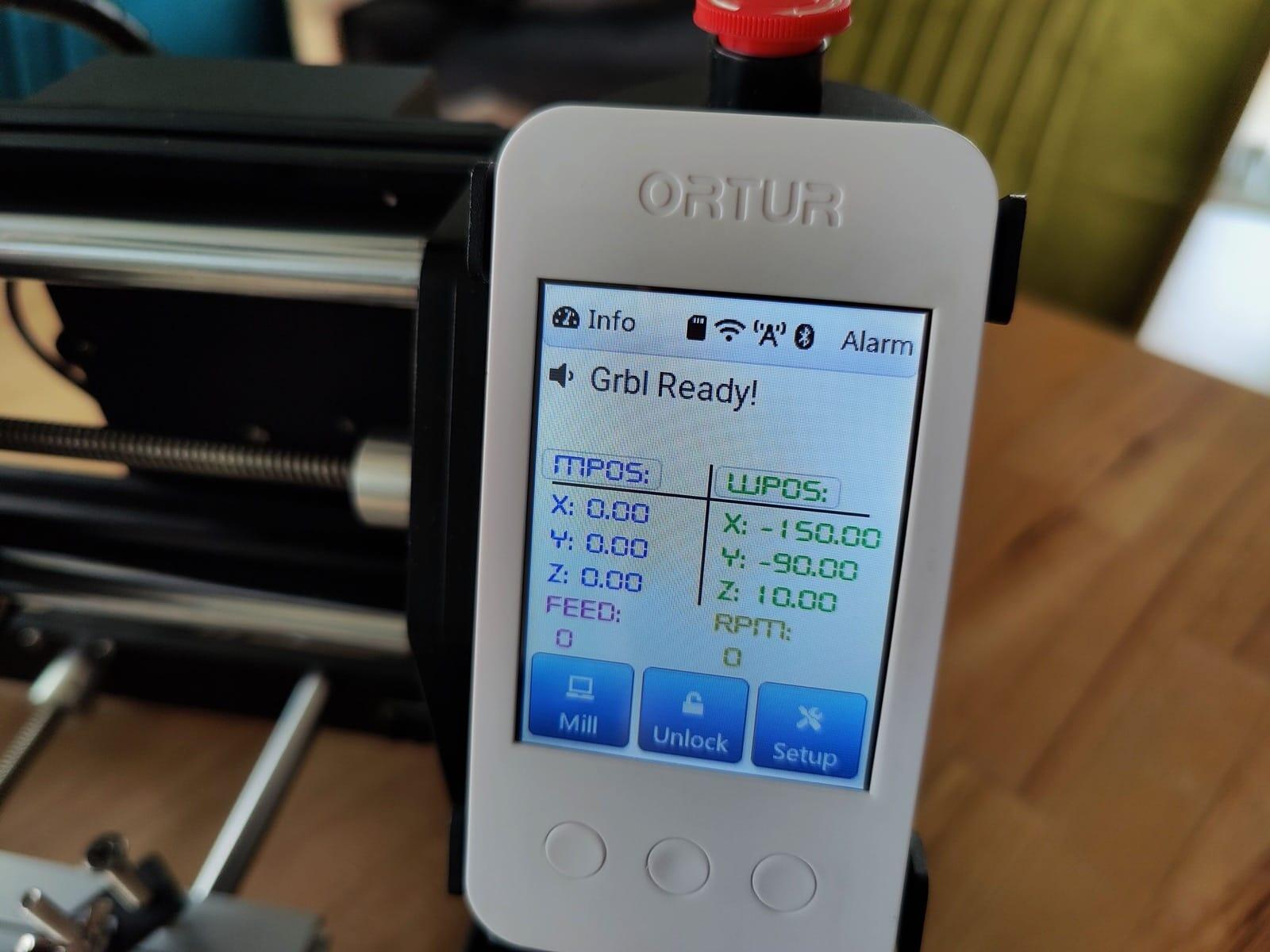 - Fernbedienung. Auch hier ist es ein Unterschied wie Tag und Nacht. Die Alfawise CNC hatte ein Dings, welches im Grunde eine Platine mit einem schlechten Display in Verbindung mit einem Flachbandkabel und schlechten Knöpfen besitzt. Die Ortur hat eine Fernbedienung in Optik eines Smartphones mit großem Touchscreen, schöner Software drauf, guten Tasten und Spiralkabel als Verbindung. SO muss das sein!