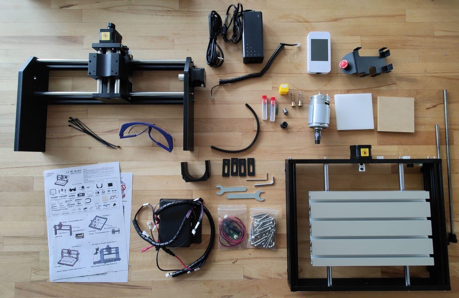 Vor einigen Monaten bekam ich von Gearbest eine umgelabelte CNC3018Pro in Form der Alfawise C10 Pro für einen Test. Der Lieferumfang war ein wahres Puzzlespiel aus zwölf Fantastiliarden Teilen, mit schlechter Bauanleitung, im Lieferumfang fehlenden Teilen für den Zusammenbau und übelster Fernsteuerung der Fräse nebst schlechter Qualität im Allgemeinen.