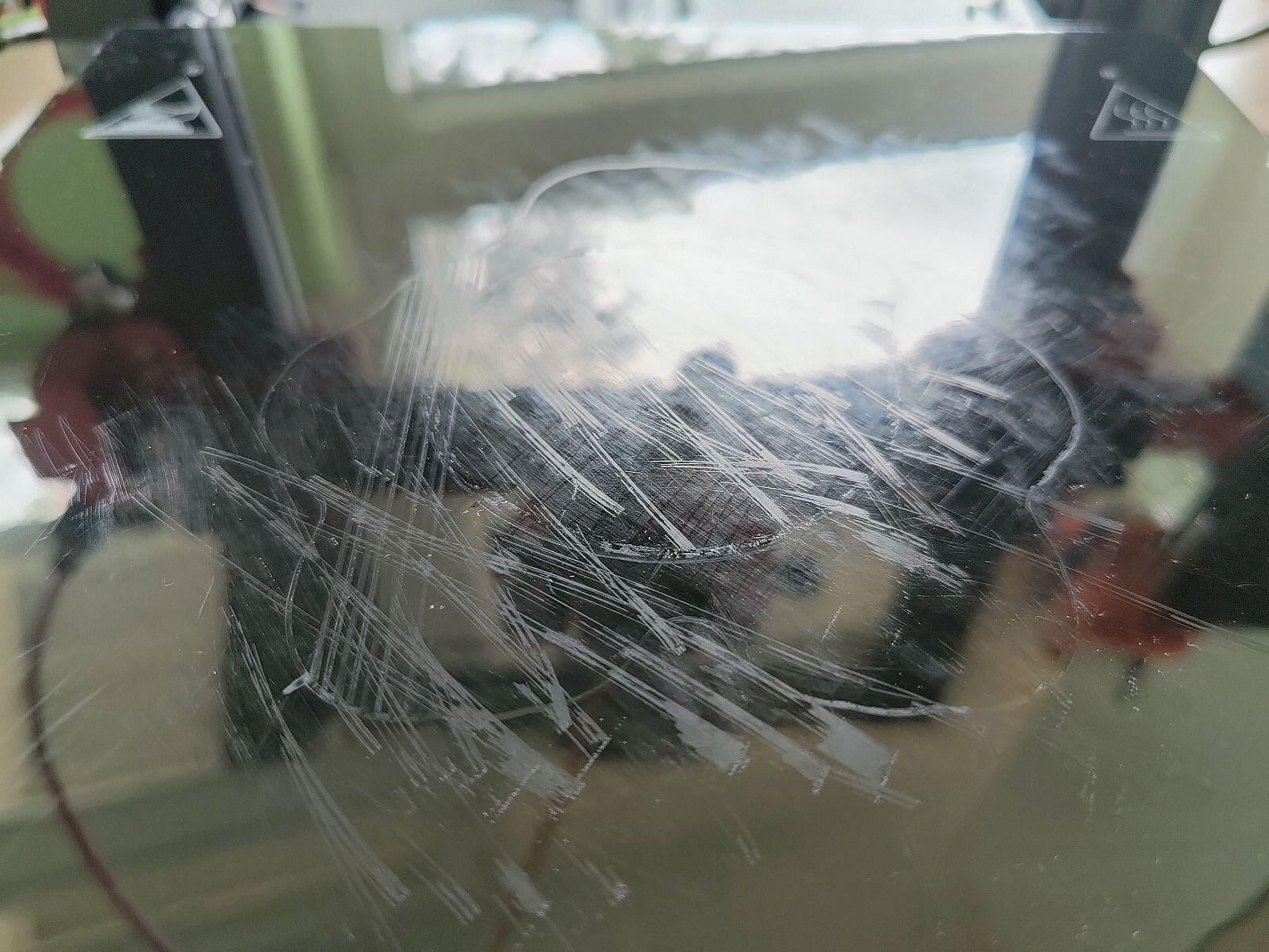 Die oben sichtbaren Kratzer sind nur oberflächlich und so hielt jeder weitere Druck trotzdem noch wunderbar fest. Allerdings ist mir was Ähnliches auch schon mit der letzten Ortur Druckplatte passiert. Die beschichteten Glasplatten anderer Hersteller halten solche Fehlversuche gefühlt deutlich besser aus. Aber es sollte kein Problem sein, hier eine andere Druckplatte drauf zu packen. Die kosten nicht die Welt und schon sind die Kratzer (vorerst) wieder Geschichte.