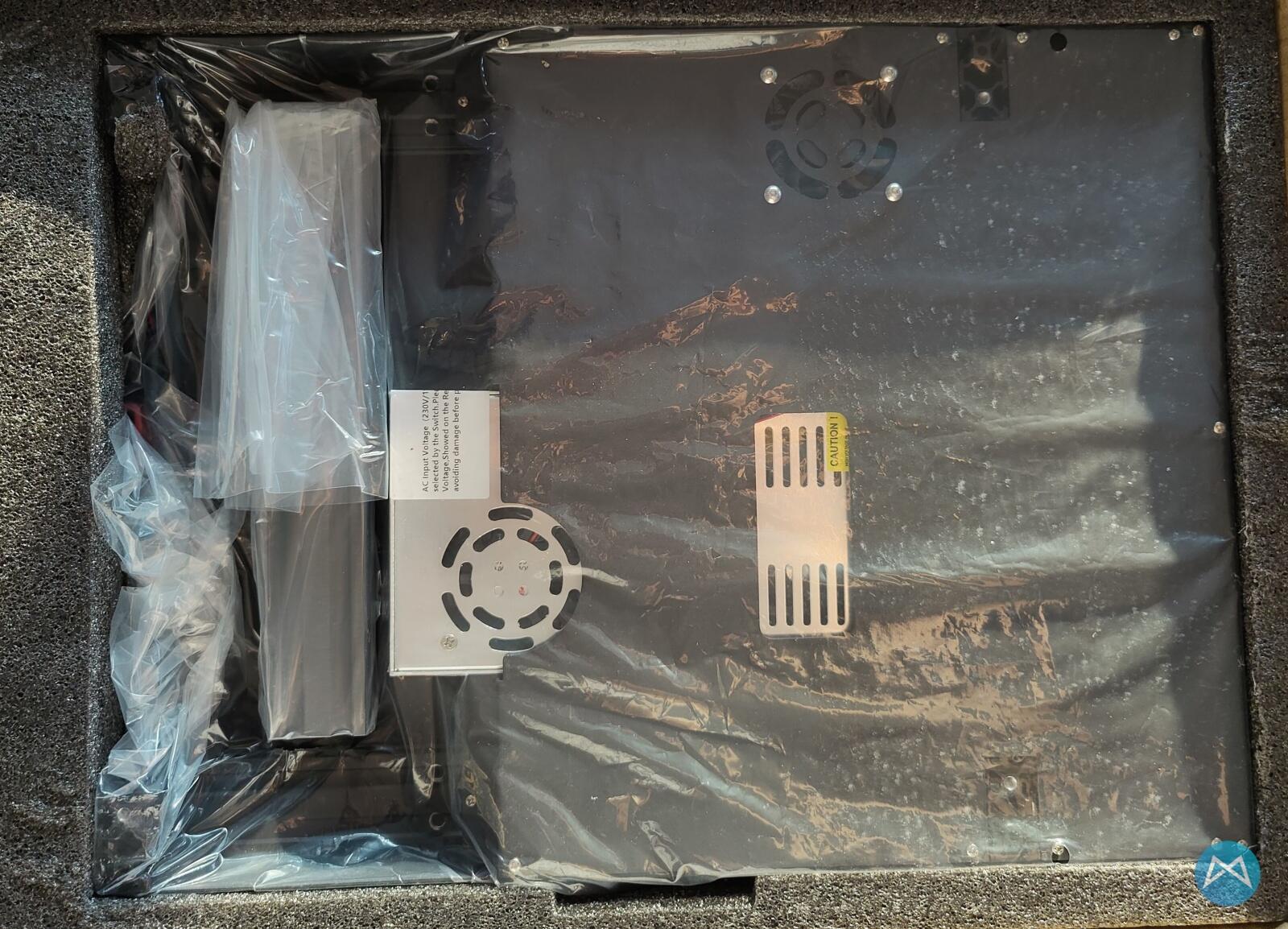 Fangen wir wie immer mit dem Lieferumfang an. Auch der Ortur Obsidian kommt typisch verpackt und eng ummantelt mit schwarzem Schaumstoff an. Jedes Teil hat sein eigenes Fach, alles ist eng verpackt und sollte die (lange) Reise gut überstehen.