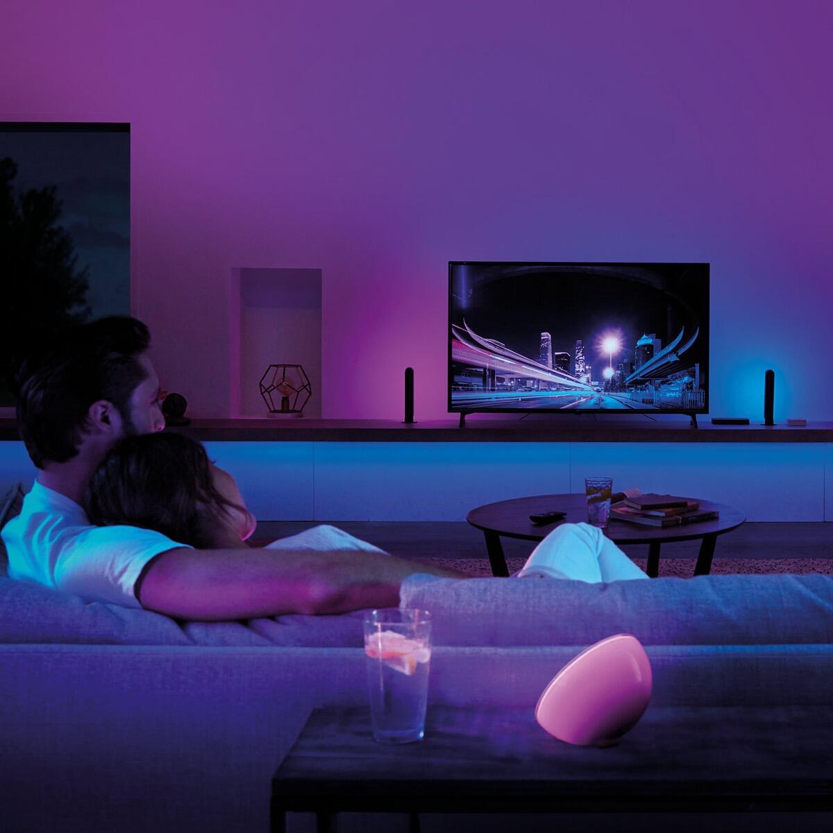 Ich würde zum Beispiel auch drei Lightbars am TV empfehlen. Eine, die nach links, eine nach rechts und eine die nach oben leuchtet. Ich fand zwei Exemplare im Test gut, hätte mir aber öfter eine weitere Lichtquelle gewünscht.