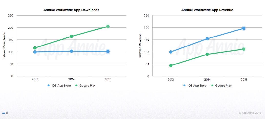 2015: Play Store dominiert App Store bei Downloads, aber nicht beim Umsatz