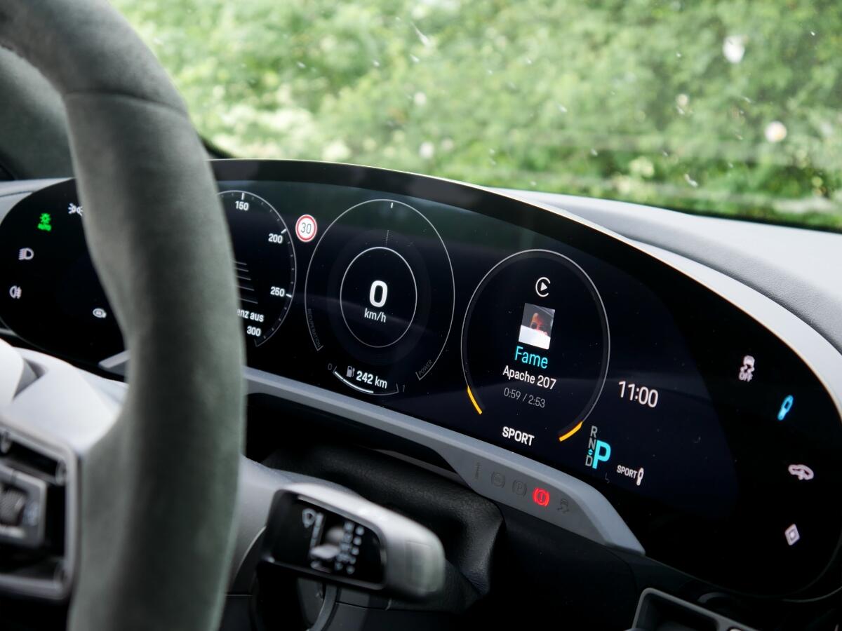 Das Display hinter dem Lenkrad hat mir sehr gut gefallen. Die Optik, die Größe, das User Interface und die Tatsache, dass es leicht gebogen ist, haben einen guten Eindruck gemacht. Es ist zwar kein OLED-Panel, hatte aber für LCD durchaus passable Schwarzwerte. Hier hat Porsche alles richtig gemacht.