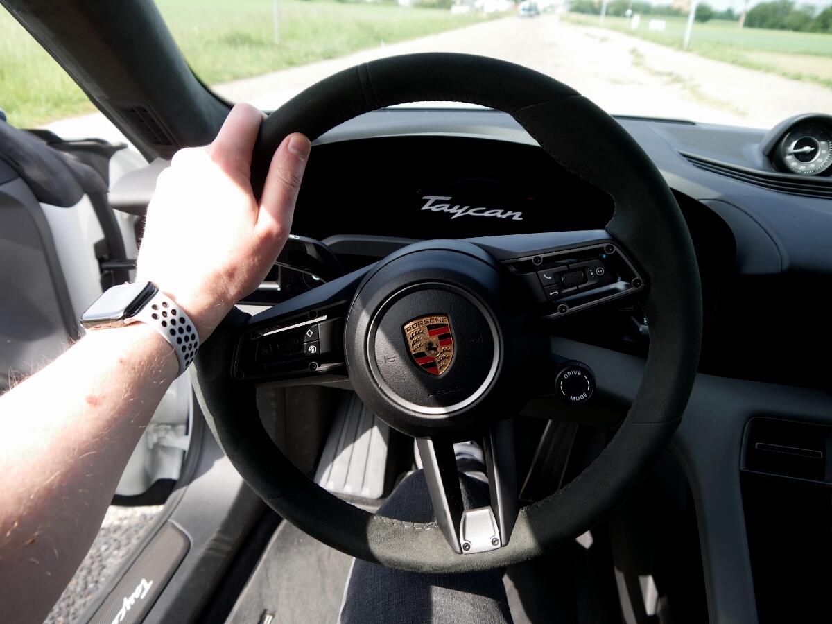 - Beim VW Passat gibt es bereits ein kapazitives Lenkrad für den Travel Assist, was Berührungen erkennt, das fehlt beim Porsche Taycan leider noch.