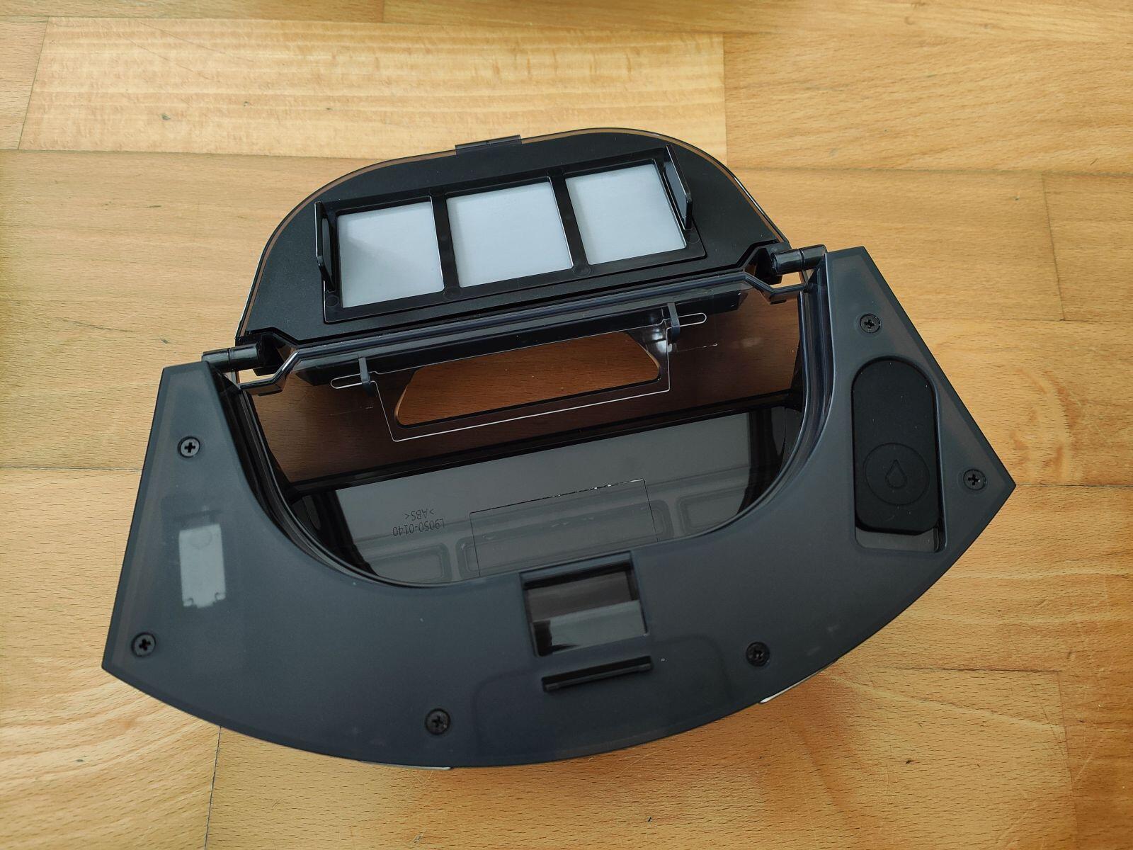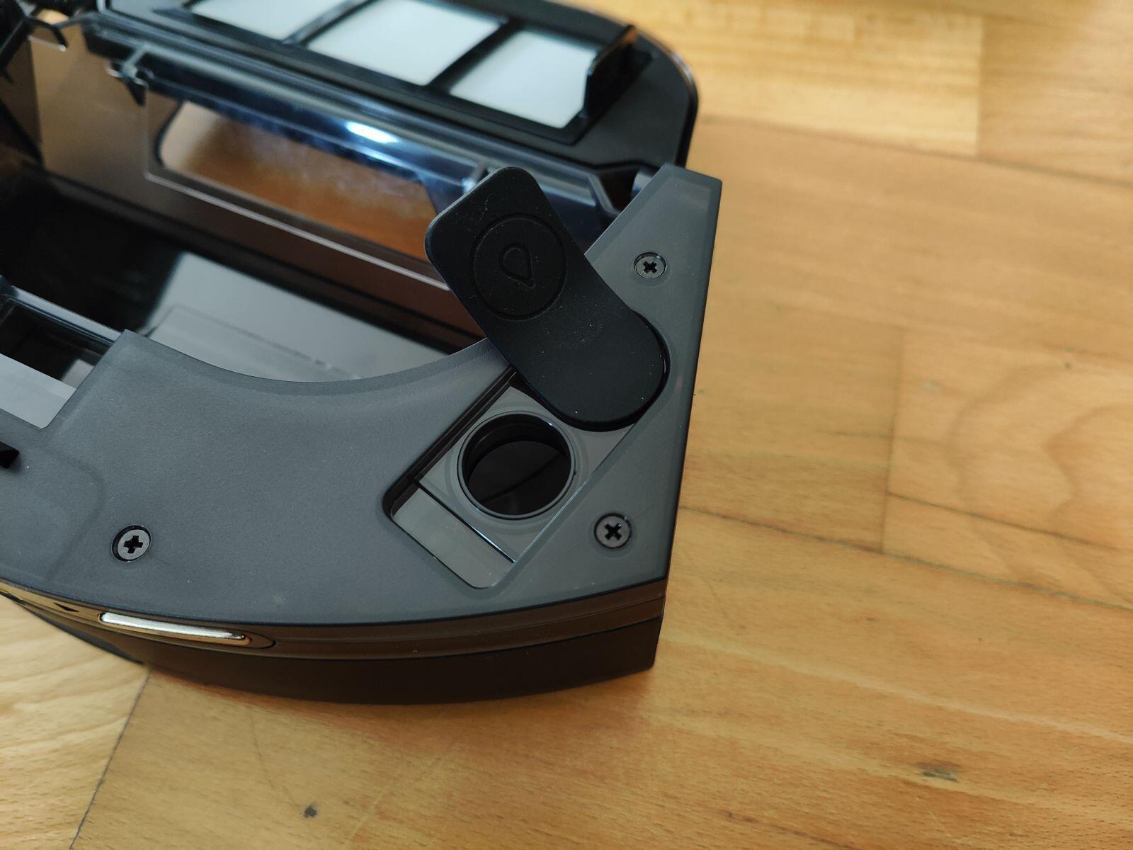 Als Reinigungssystem wird hier lediglich ein Mop unter den Behälter geklemmt und während der Fahrt Stück für Stück Flüssigkeit auf den Mop rausgelassen, welcher dann während der Fahrt hinter bzw. unter dem Sauger herzieht. Die 200ml genügten für meine knapp 40 Quadratmeter in Reinigungsstufe 3 ca. für eine Reinigungsfahrt.