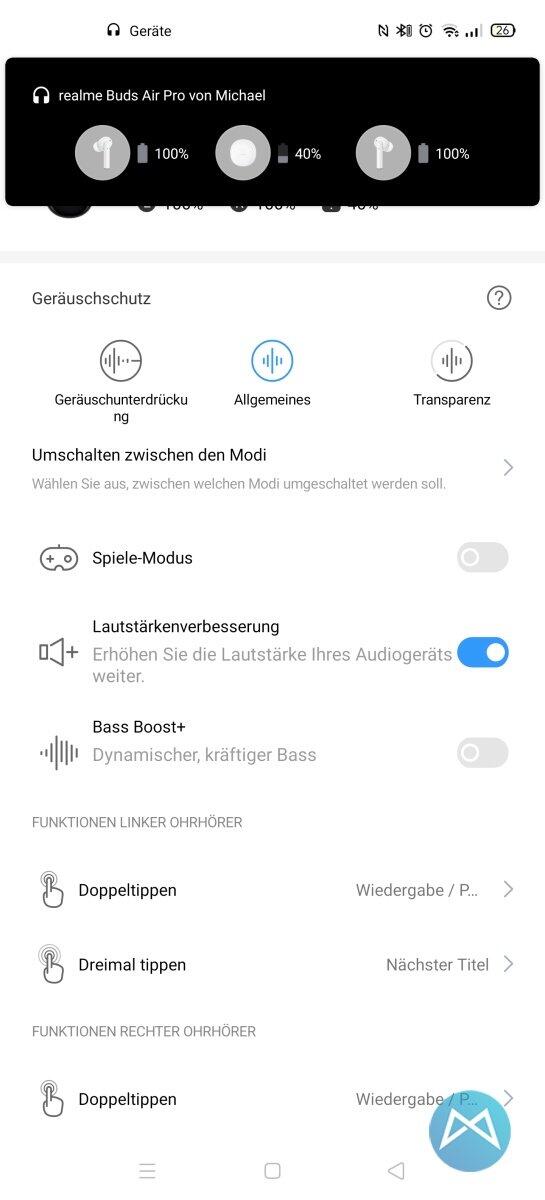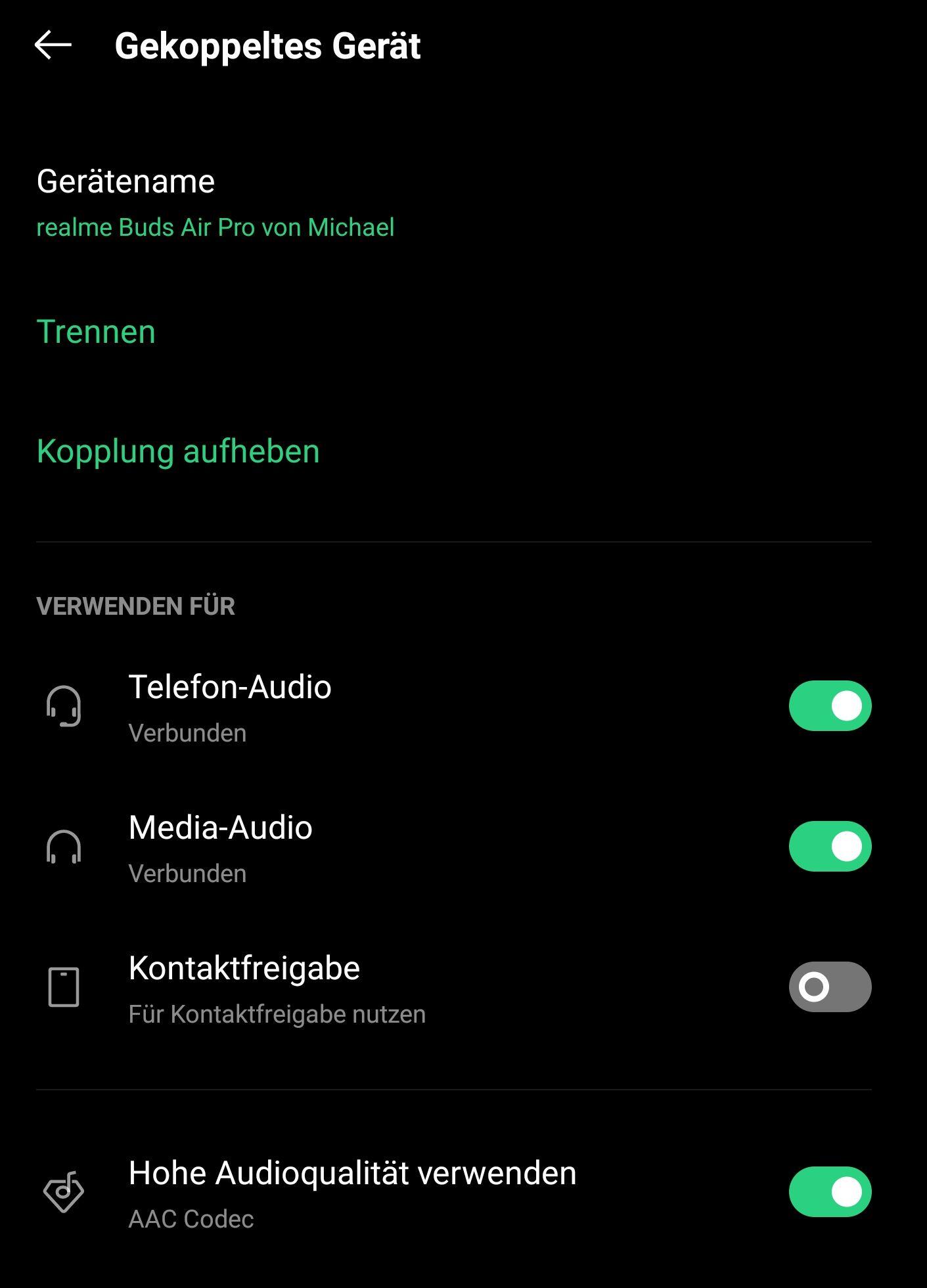 • Wer den Sound ein wenig optimieren möchte, sollte trotzdem im Smartphone in den Blueooth-Einstellungen vorbeischauen. Dort konnte ich als Qualitätsstandard noch AAC aktivieren.