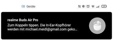 • Google Fast Pair wird unterstützt. Dies bedeutet, dass es bei aktiviertem Bluetooth am Smartphone genügt, den Deckel des Ladecase zu öffnen. Nach kurzer Zeit erscheint ein Popup, ob man die Kopfhörer per Bluetooth koppeln möchte. Kein umständliches Suchen via Bluetooth-Einstellungen mehr nötig! I like!