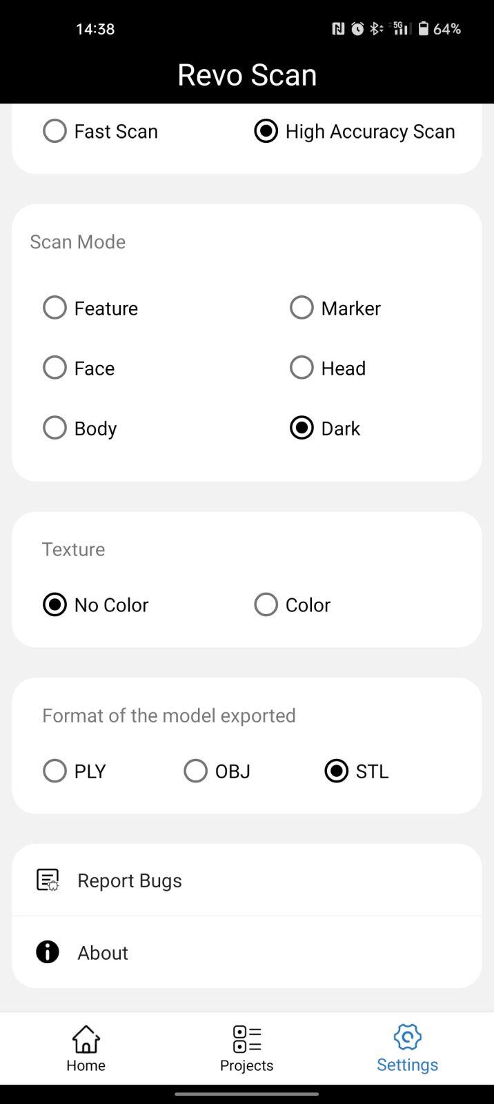 - was überhaupt gescannt werden soll (Körper, Gesicht, Figur, Dunkles Objekt, …)