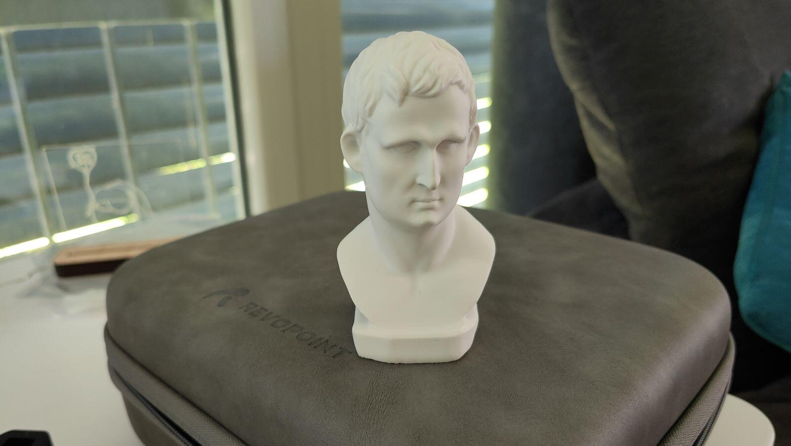 Es gibt eine Büste im Lieferumfang, die man dazu nutzen soll die Kamera auszuprobieren, zu Kalibrieren und erste Erfahrungen damit zu sammeln. Das wollte ich aber explizit NICHT machen, da diese Büste selbstverständlich optimal für den Scanner ist. Hier gibt es keine dunklen Stellen und alle Konturen sind besonders ausgeprägt, so dass der Scanner keine Probleme beim einlesen haben dürfte. Aber erwähnen wollte ich es dennoch hier einmal.